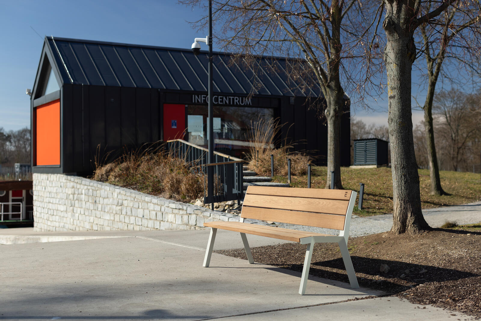 Lavičky E3 svým tvarováním dokážou podtrhnout význam prostoru. Zároveň ale neruší – celkový dojem zklidňují jednoduché a čisté plochy sedací části a opěradla. Použity jsou buď lamely, nebo desky z masivního dřeva s možností povrchové úpravy.