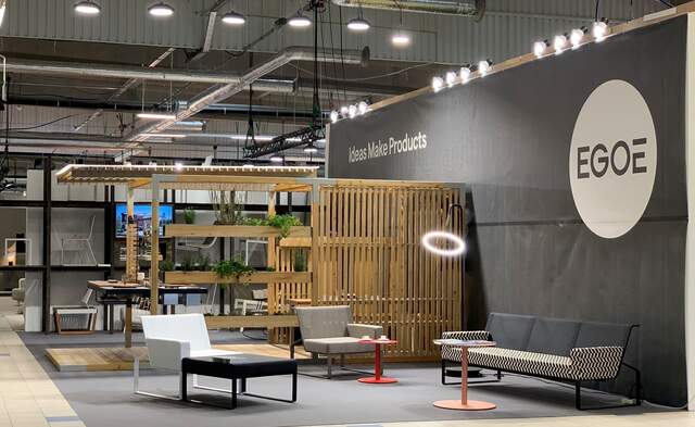 Společnost Egoé postavila svou expozici především na kostkách Leva ze sestavy Home. Jejich čtyři kolmice umožňují si vytvářet vlastní svět, modulovat jej, uzpůsobovat myšlenkám, prostoru a potřebám. Jejich montáž je jednoduchá a rychlá, variabilita obrovská. Expozici dále doplnila třeba exteriérová lampa Laso nebo nábytek z kolekcí Barka, Máj a Moja.