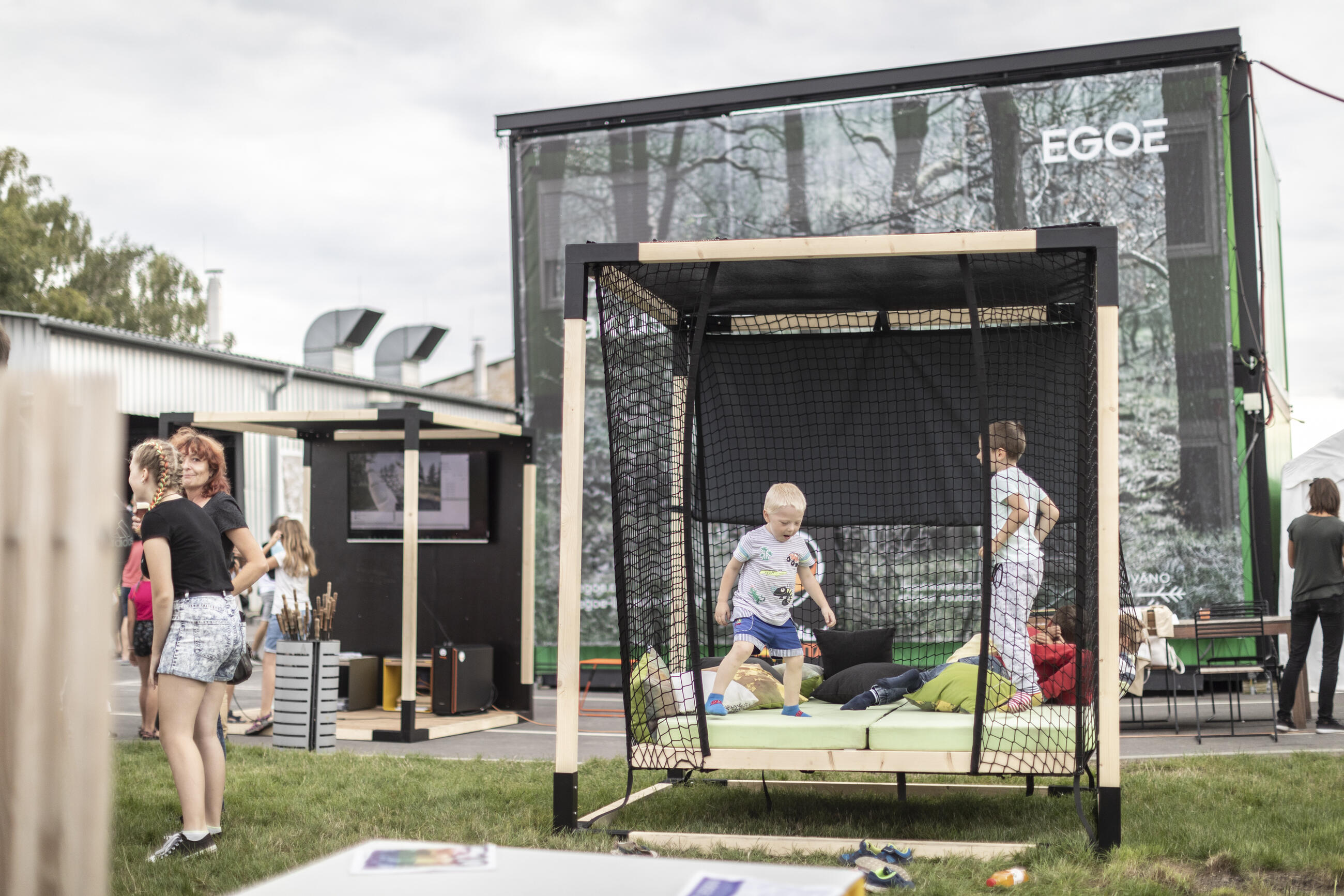 Egoé rozeselo po celém areálu své nápadité expozice. V kempu Egoé nest jste se mohli dozvědět vše o vestavbách Nestbox, hned vedle se usadil bílovický veterán klub a kdo byl unavený, ten si odpočinul u rybníčku. Kemp hostil i zajímavé osobnosti, jako třeba herce Hynka Čermáka, automobilového závodníka Aleše Lopraise nebo otce Gastromapy Lukáše Hejlíka. Další atrakcí kempu byla výstava dokumentující jednu výjimečnou rodinnou dovolenou: přední česky fotograf Jiří Thýn se svou rodinou procestoval Slovinsko. Jak jinak než s Nestboxem. Přijeli i zákazníci se svými vestavbami, ve kterých strávili dva festivalové večery.