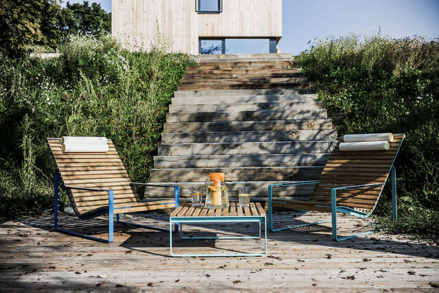 Materiál PUR pěna potažena outdoorovou síťovinou Batyline®, uchycení dřevěnou tyčí