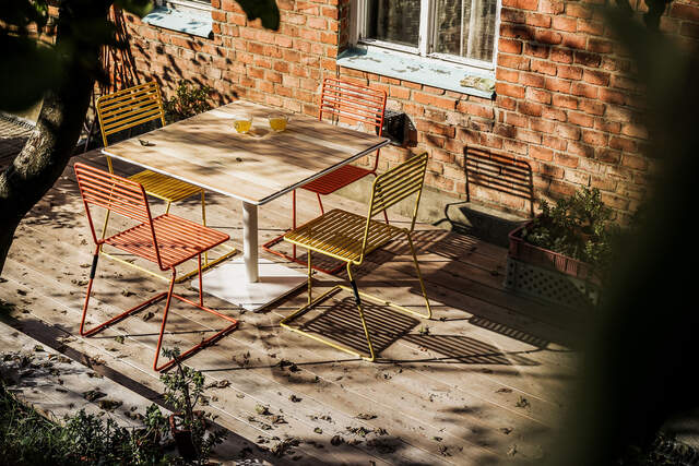 ocelová konstrukce s protikorozní ochrannou vrstvou zinku a práškovou vypalovací barvou, masivní dřevo s možností aplikace oleje