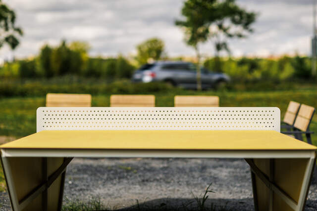 ocelová konstrukce s protikorozní ochrannou vrstvou zinku a práškovou vypalovací barvou, povrch z vysokotlakého laminátu (HPL)