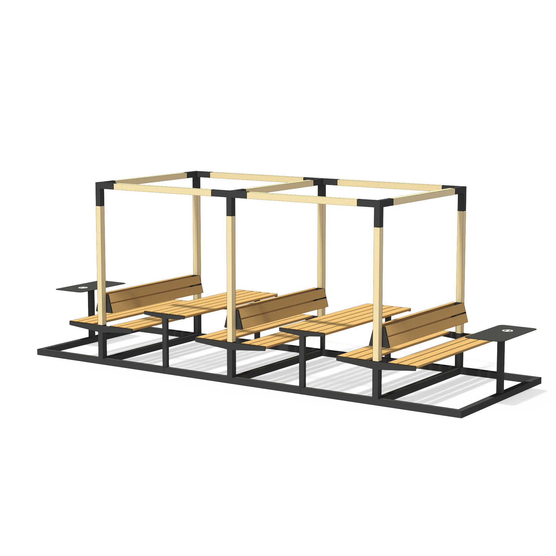 Dva moduly s terasami, lavicemi, stoly a stolky