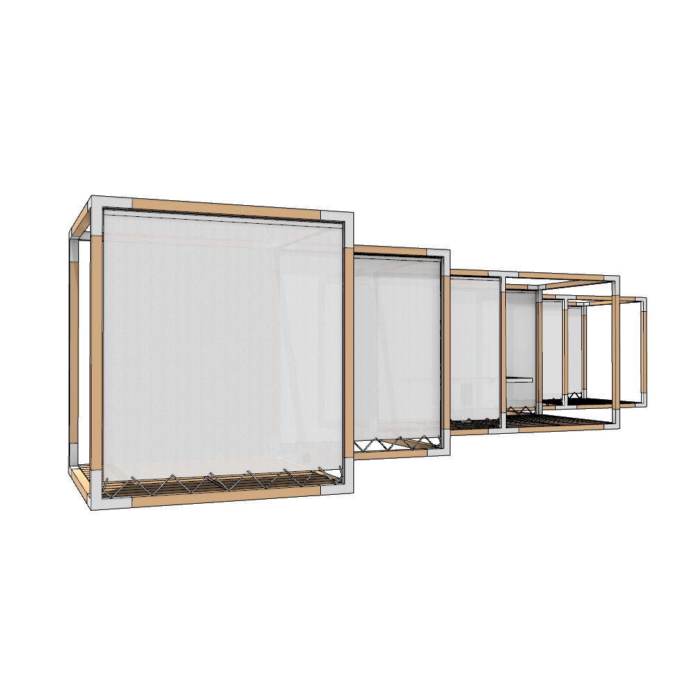 LEV110 /2x/, LEV120, LEV450 /6x/, LEV500 /3x/, LEV801, kovové spojky /4x/, dřevěné hranoly /10x/