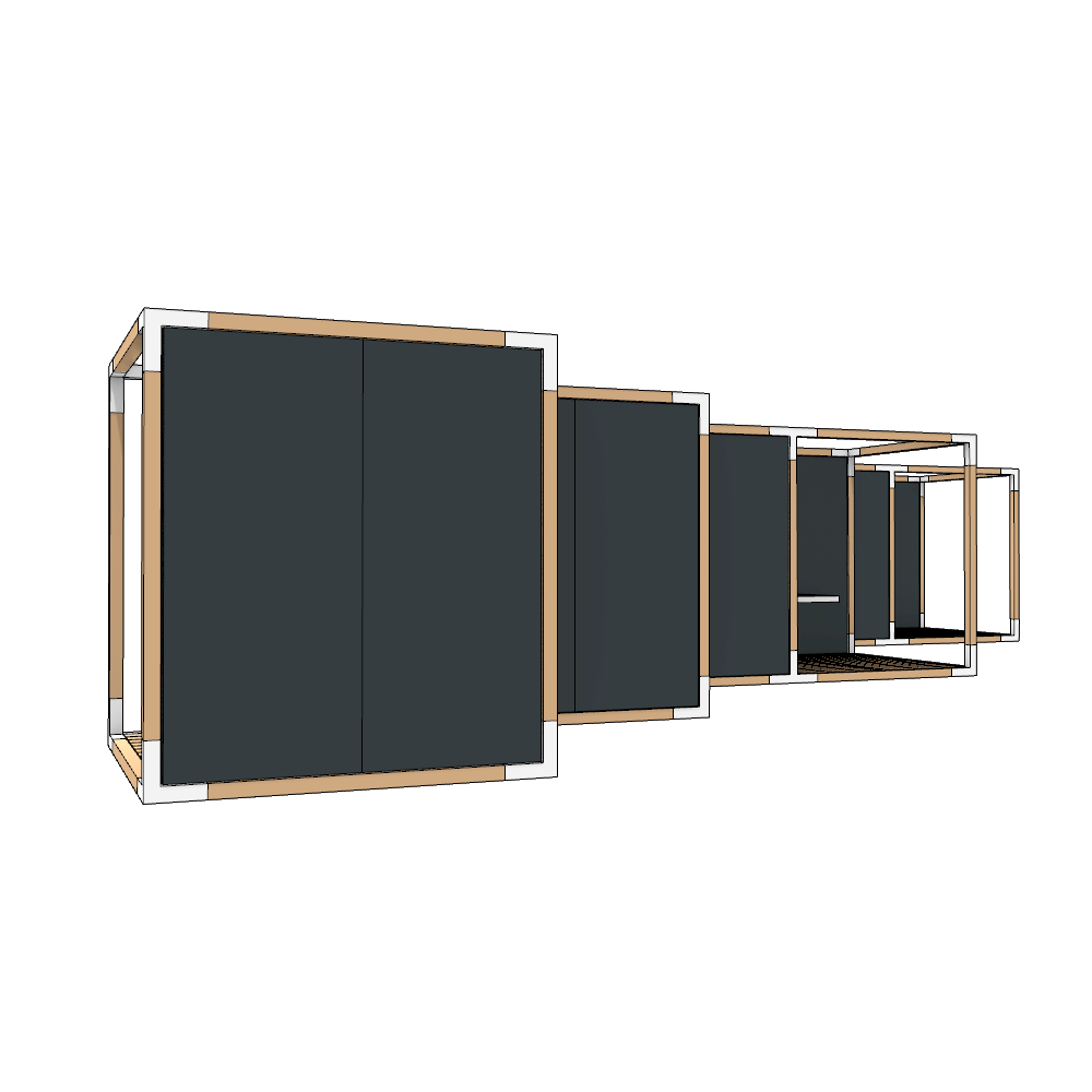 LEV110 /2x/, LEV120, LEV001 /6x/, LEV011 /12x/, LEV500 /3x/, LEV801, kovové spojky /4x/, dřevěné hranoly /10x/