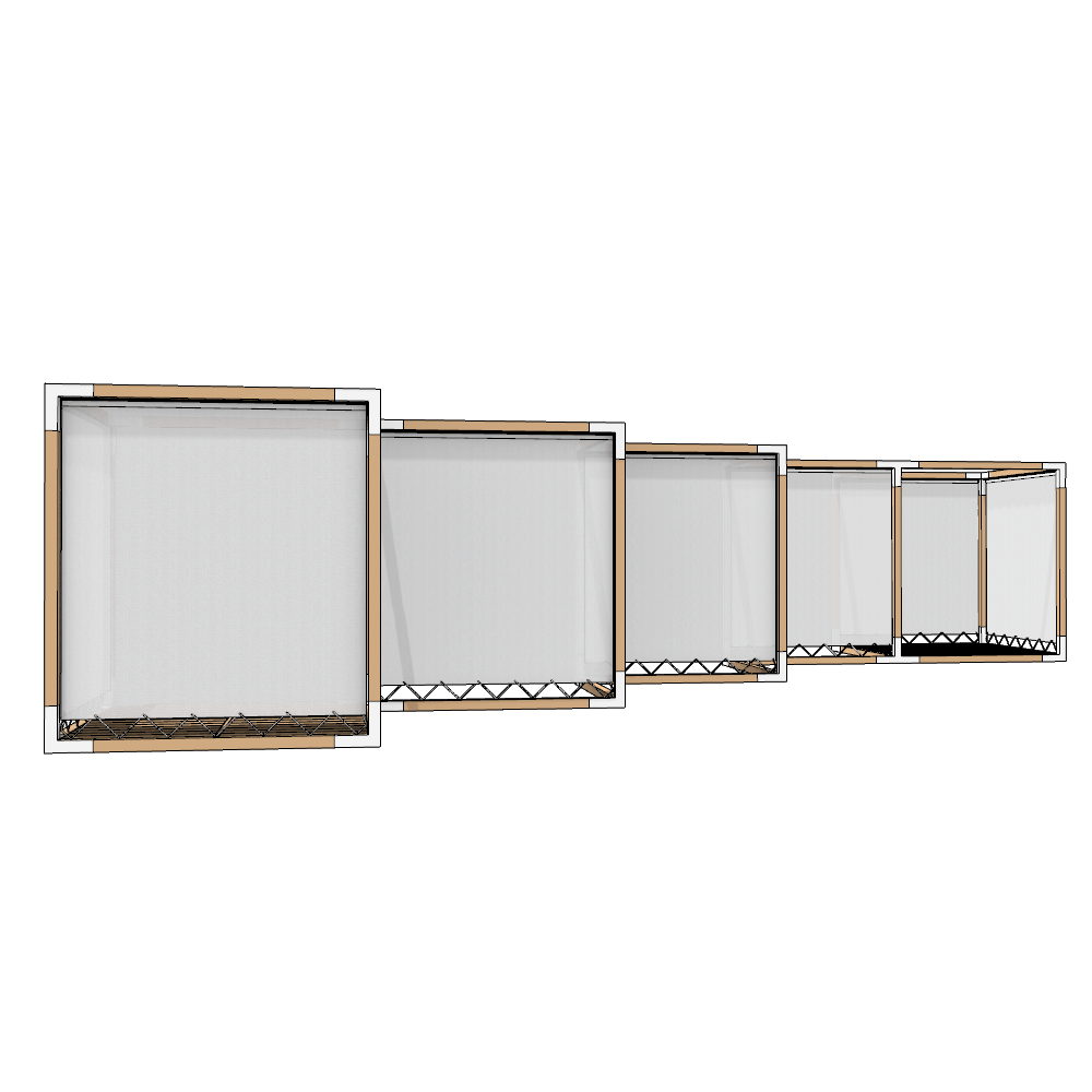 LEV110 /2x/, LEV450 /9x/, LEV500 /2x/, kovové spojky /8x/, dřevěné hranoly /14x/
