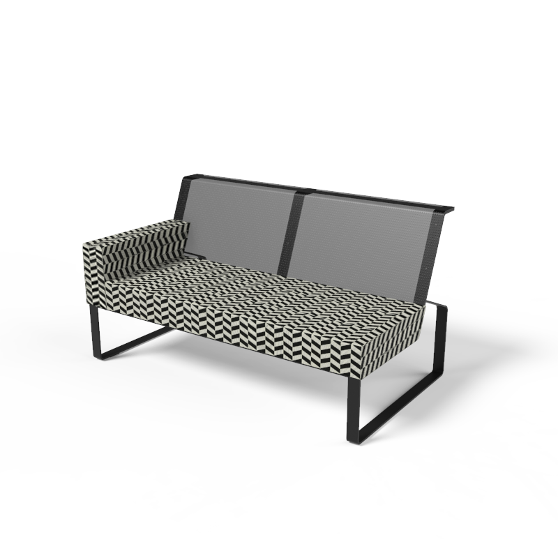 ocelová konstrukce s protikorozní ochrannou vrstvou zinku a práškovou vypalovací barvou, sedák z outdoorové pěny Dryfeel®, potaženo voděodolnou outdoorovou látkou, opěradlo z outdoorové síťoviny Batyline®