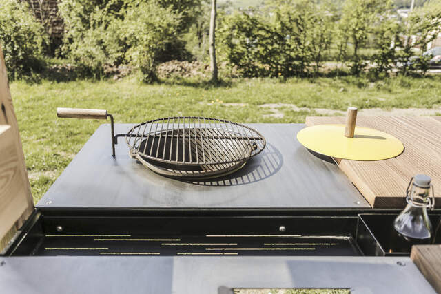 | Materiál | Ocelová konstrukce s protikorozní ochrannou vrstvou zinku a práškovou vypalovací barvou, pracovní plocha z desek pařeného akátu, nerezové prvky. Dřevo je ošetřeno nano nátěrem bezbarvého oleje. |