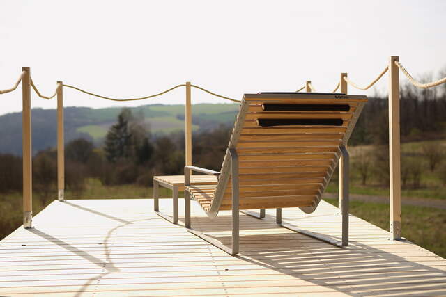 Vyhlídka byla obohacena o lesní expozici výrobků. Třímístná pohovka Moja, stůl s židlemi řady Tina, lehátka Alva, křeslo a podnožka Barka, věšák Salto a další výrobky se tak ocitly v prostoru nádherných kulis samotné přírody.