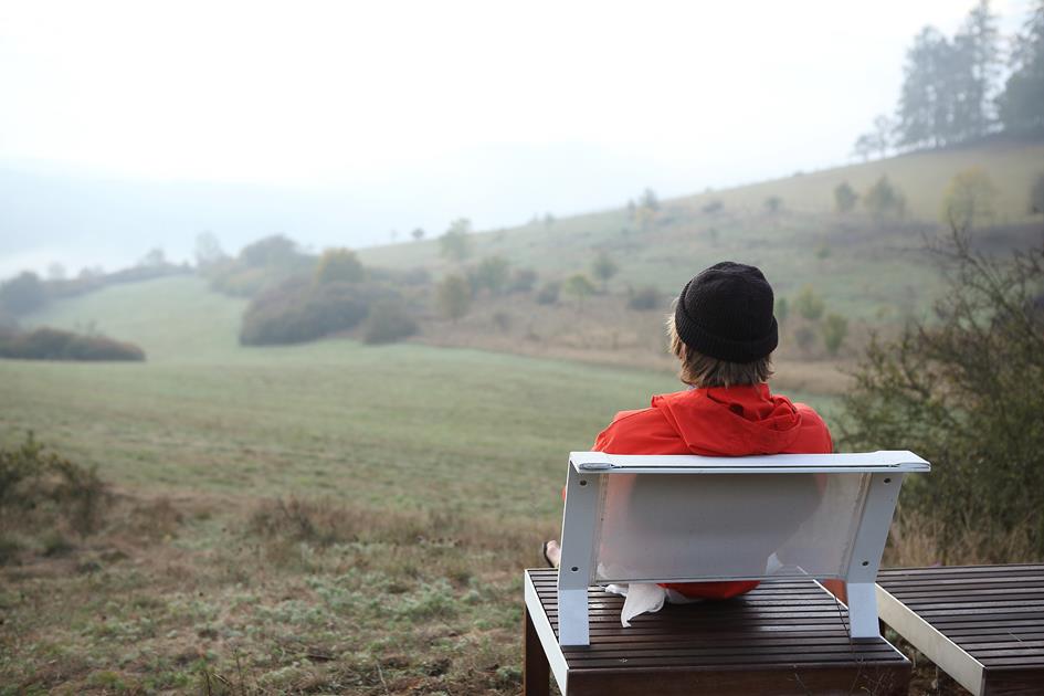Od slov k činu neuběhlo mnoho dní. V podzimním prosluněném křivoklátském ránu jsme setkali vzájemně své nálady a přivítali se s dalšími “hosty”, rozespalým Radkovým synem Vaškem a jeho kamarádem Lukášem. Oba chlapi jako hory. Dvougenerační výprava čtyř mužů v doprovodu fotografující ženy pochodovala vstříc zdejším lesům s jasným záměrem společně nalézt vhodné místo v krajině, kde by instalované zahradní posezení souznělo s prostorem, vzbuzovalo pozornost kolemjdoucích i nutkání spočinout.