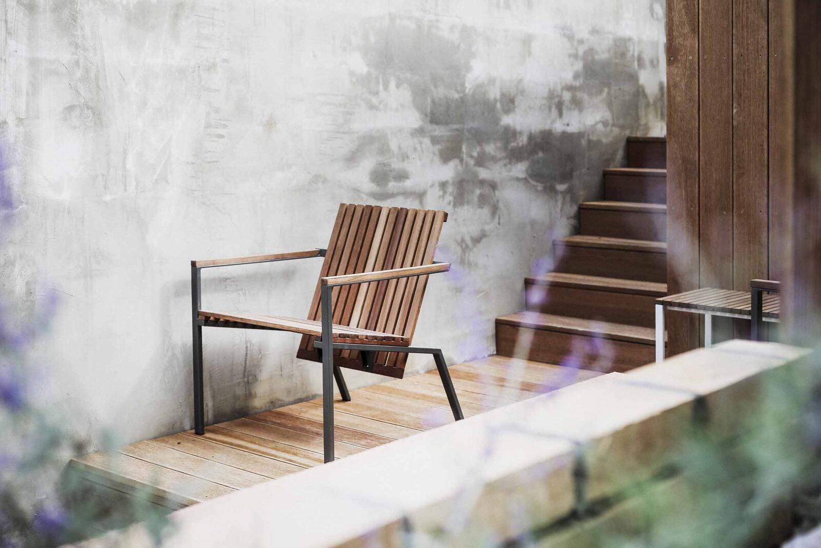 Die seitlichen Profile treten absichtlich aus dem Korpus der Sitzfläche heraus und die schrägen hinteren Beine sorgen für einen einzigartigen Charakter sowie die außergewöhnliche Stabilität der Reihe Axis. Der visuelle Kontrast zwischen den Quer- und Längslamellen bestätigt, dass auch ein erschwingliches und praktisches Produkt mit dem Fokus auf Details zum attraktiven Möbel für den Garten oder die Terrasse umgewandelt werden kann.