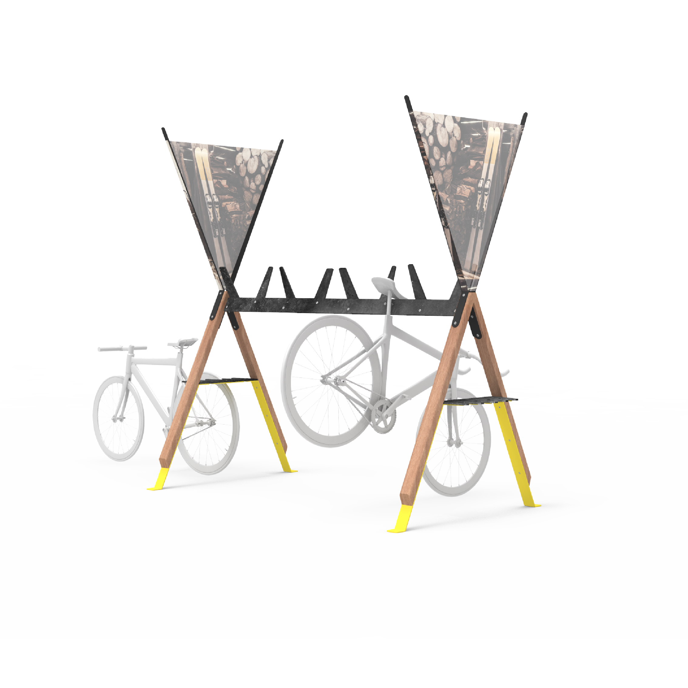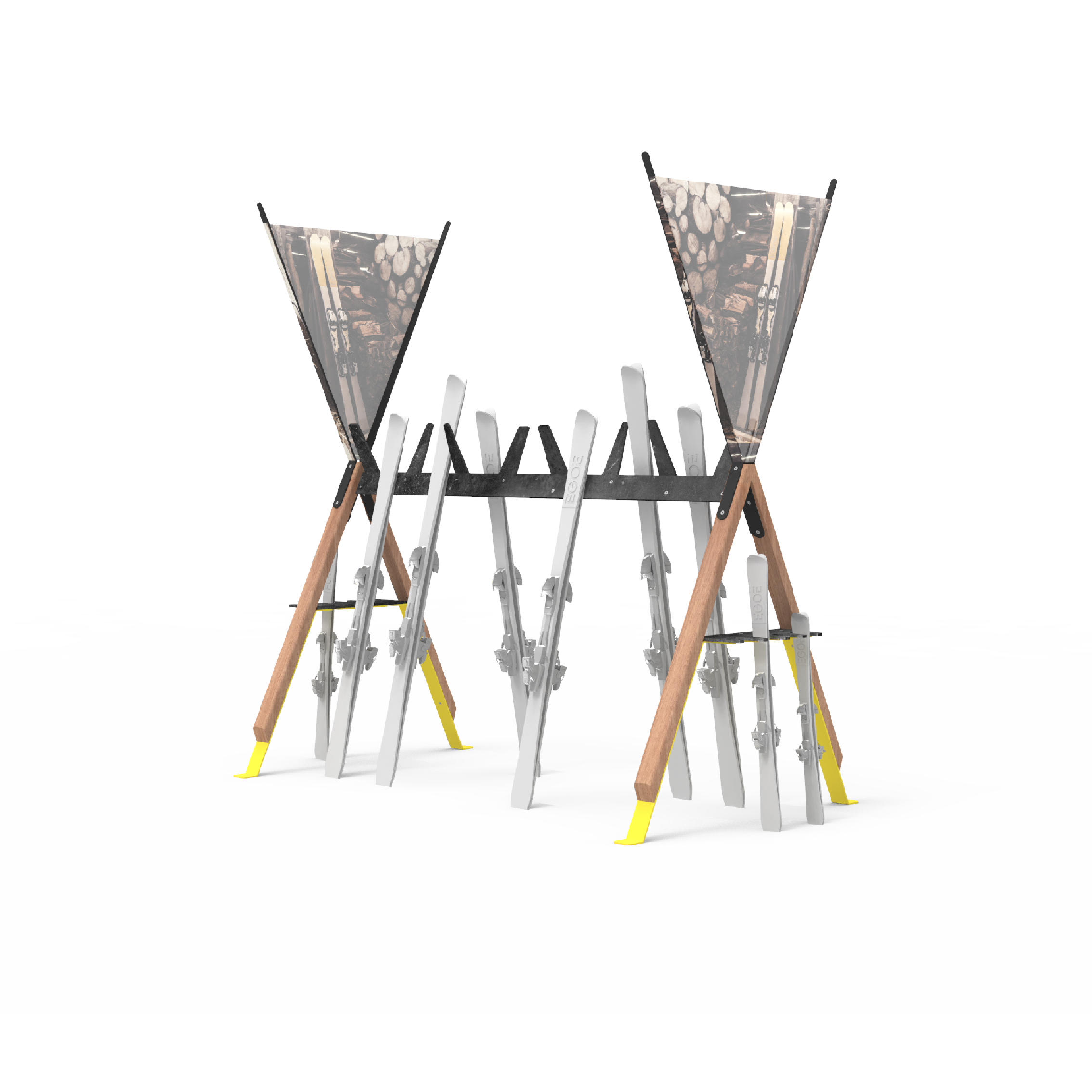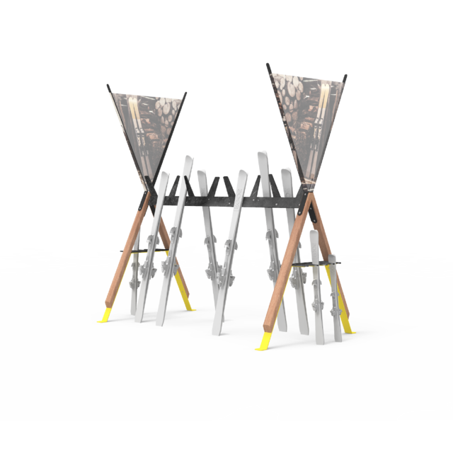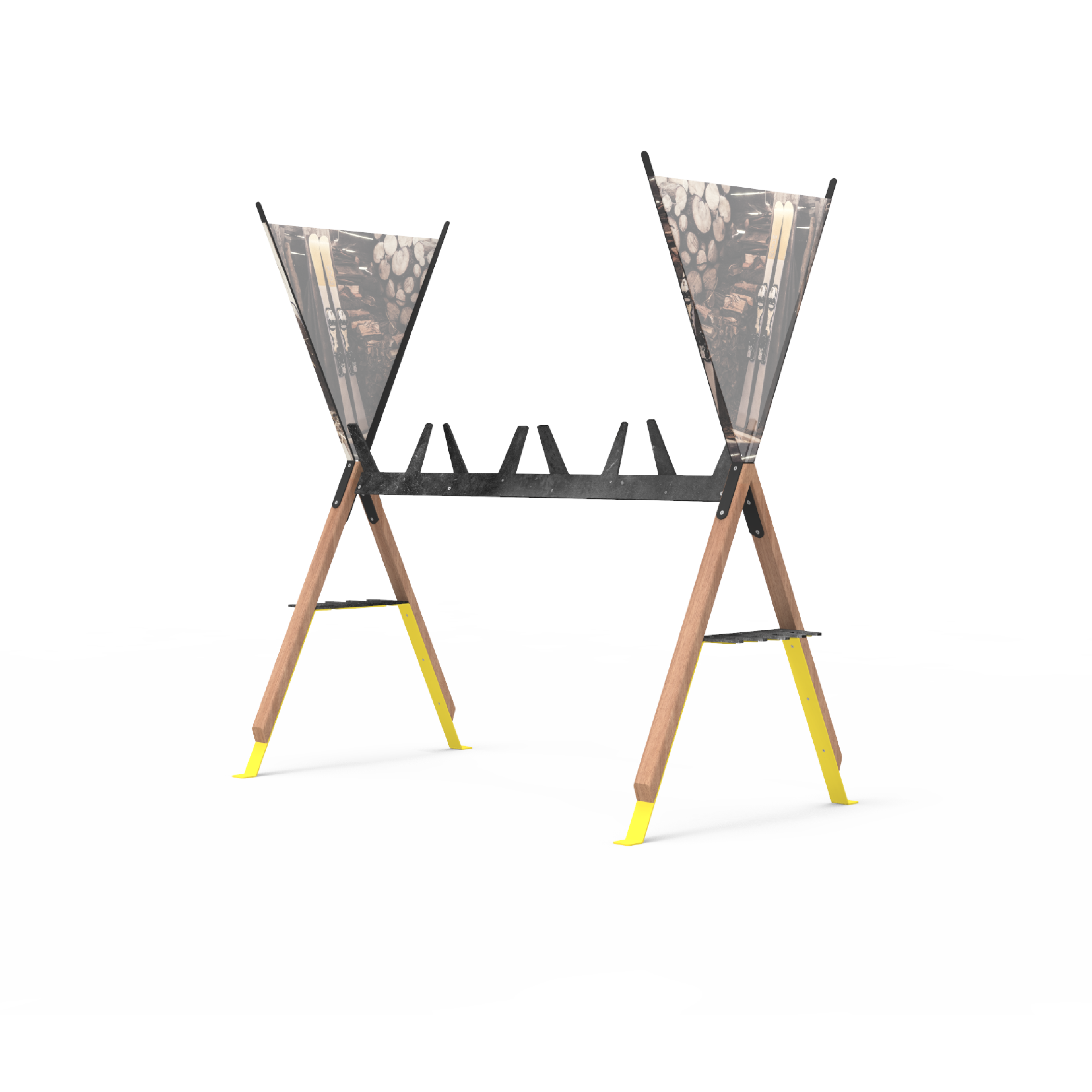 Gummi-Kamm, Stahlkonstruktion, Beine aus massivem Tropenholz