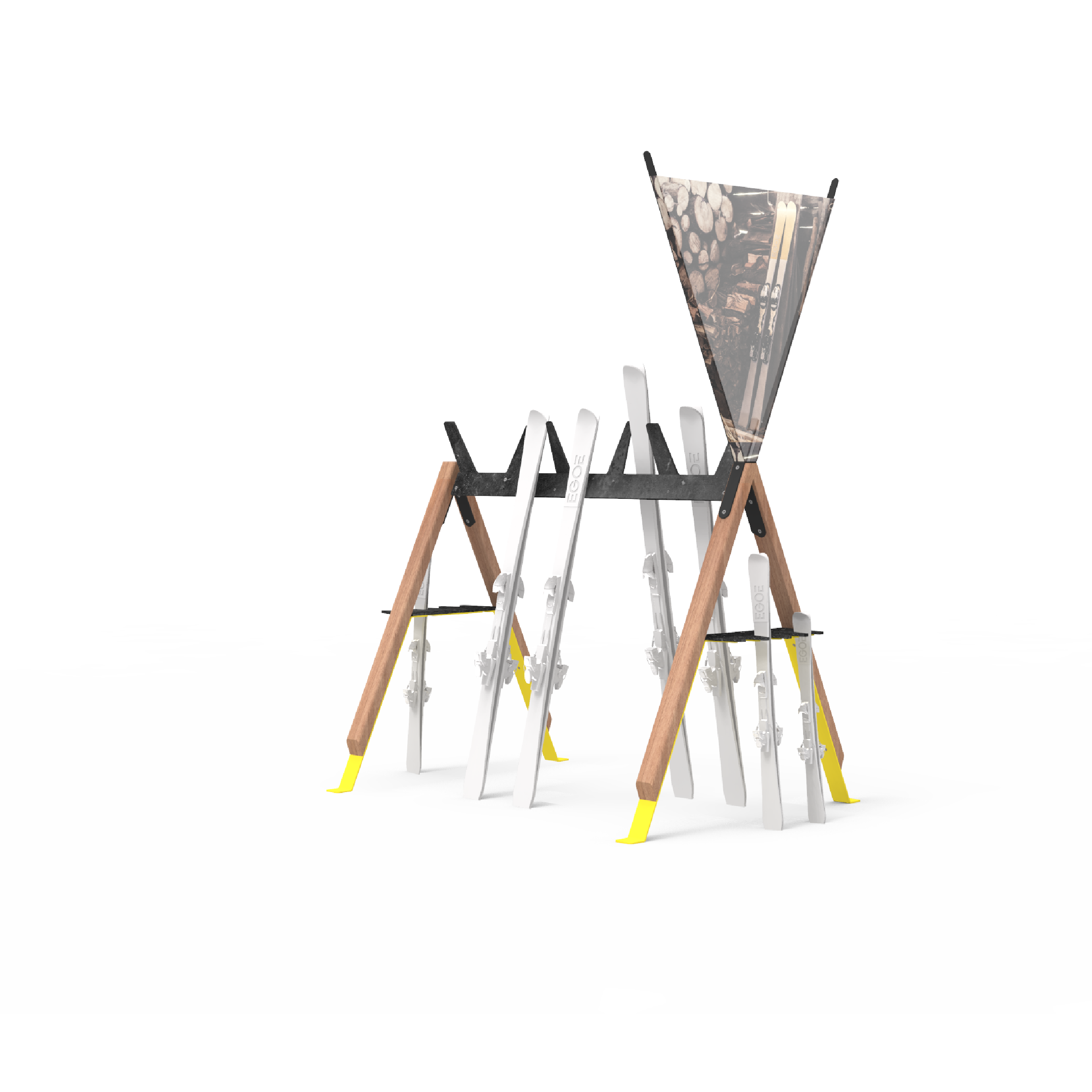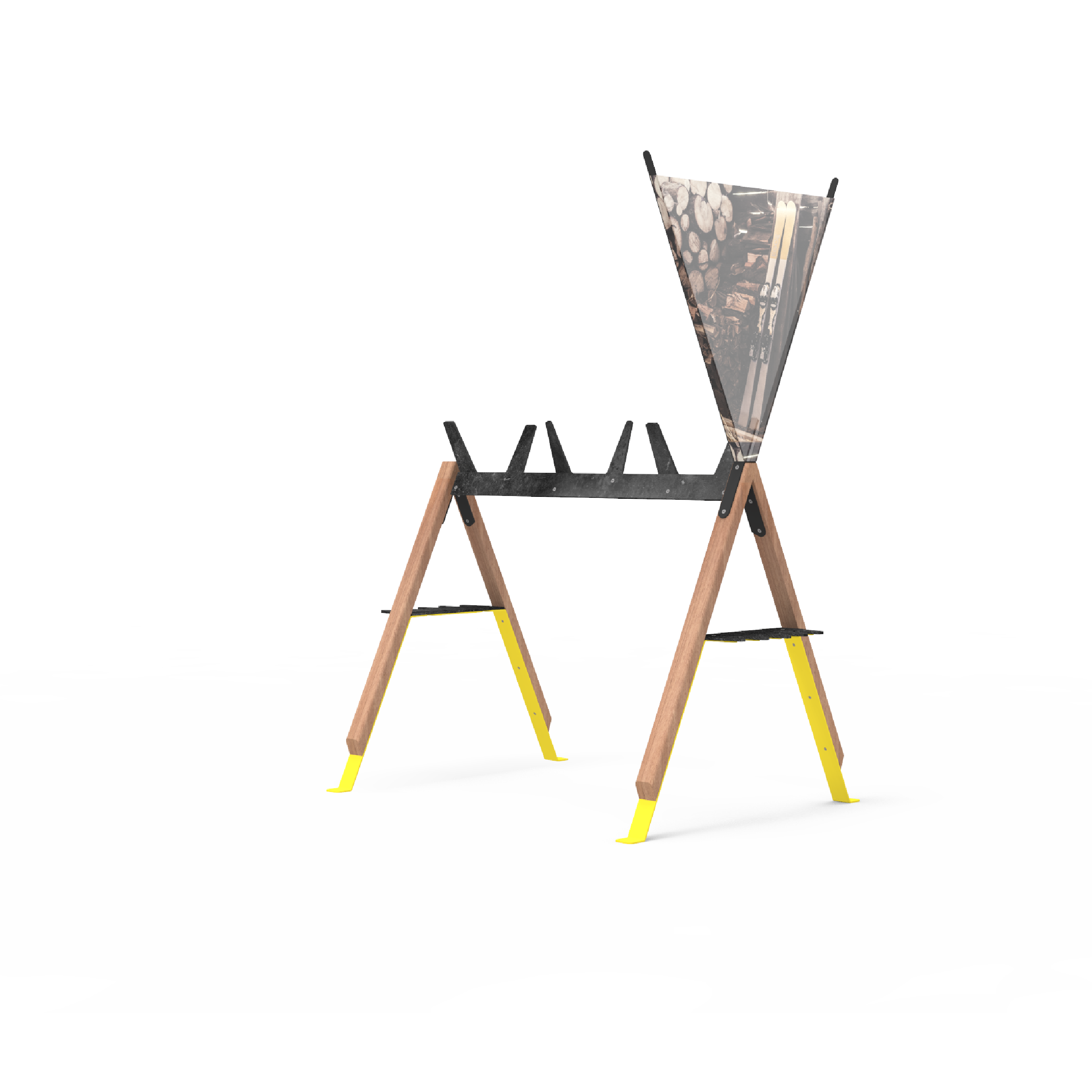 Gummi-Kamm, Stahlkonstruktion, Beine aus massivem Tropenholz