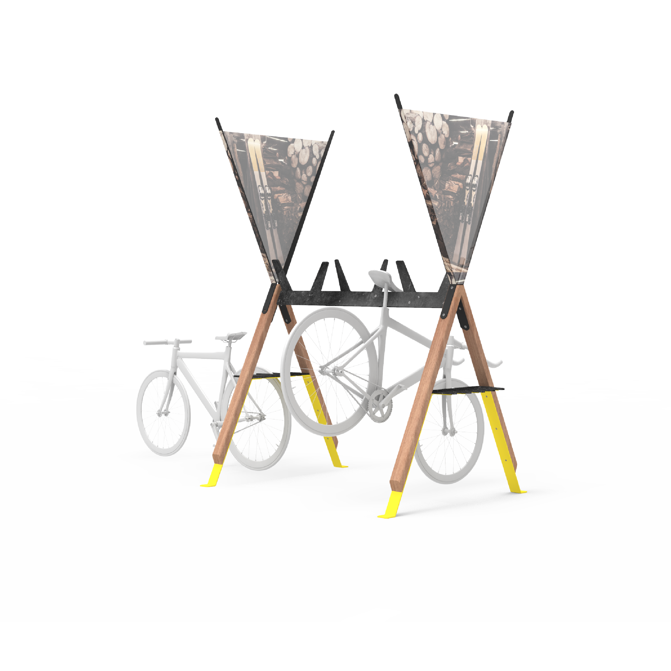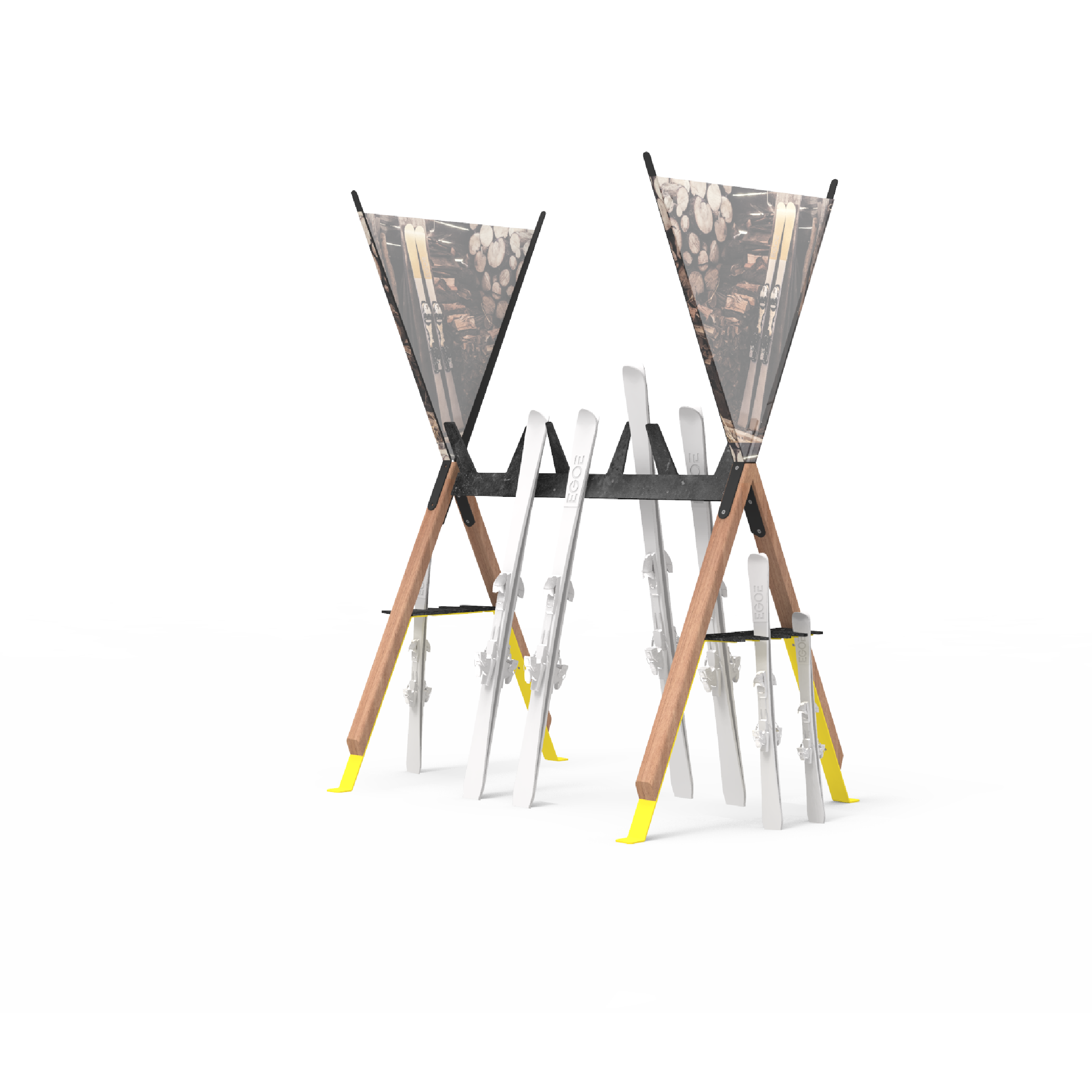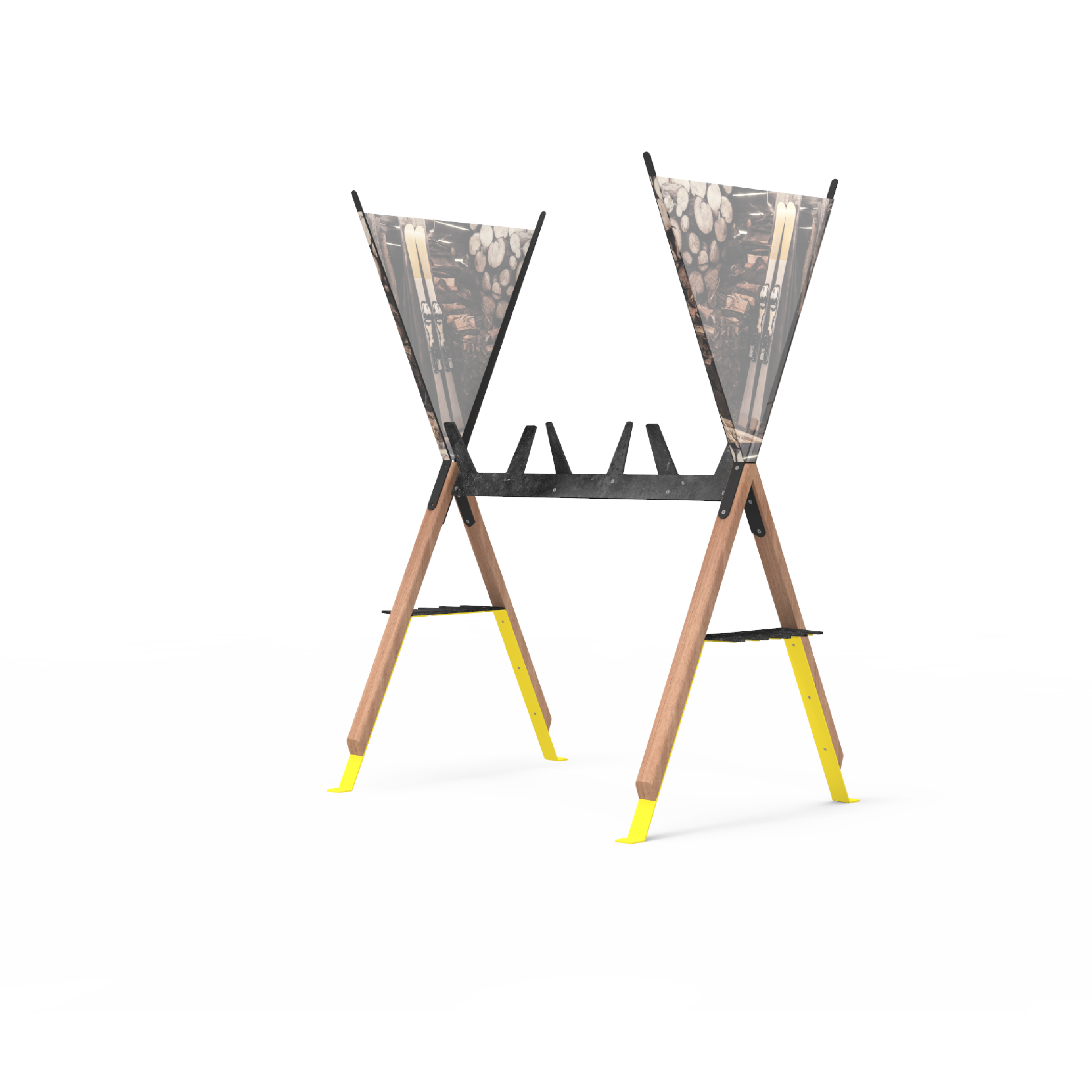 Gummi-Kamm, Stahlkonstruktion, Beine aus massivem Tropenholz