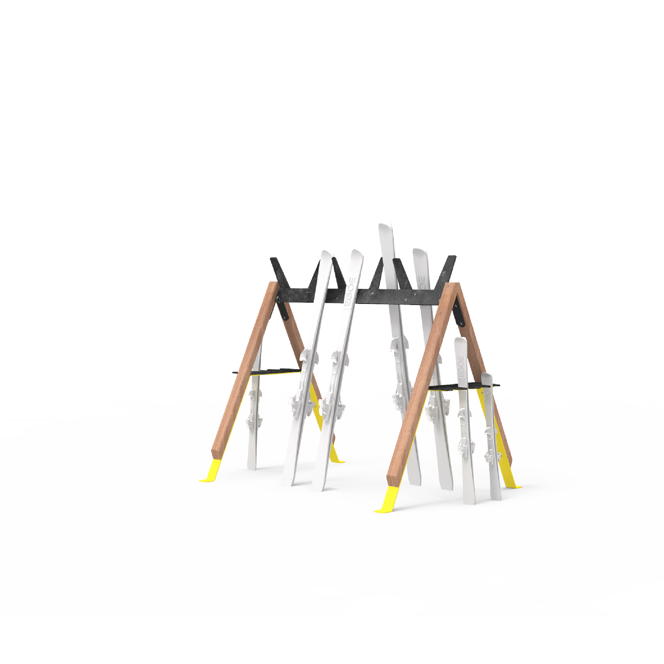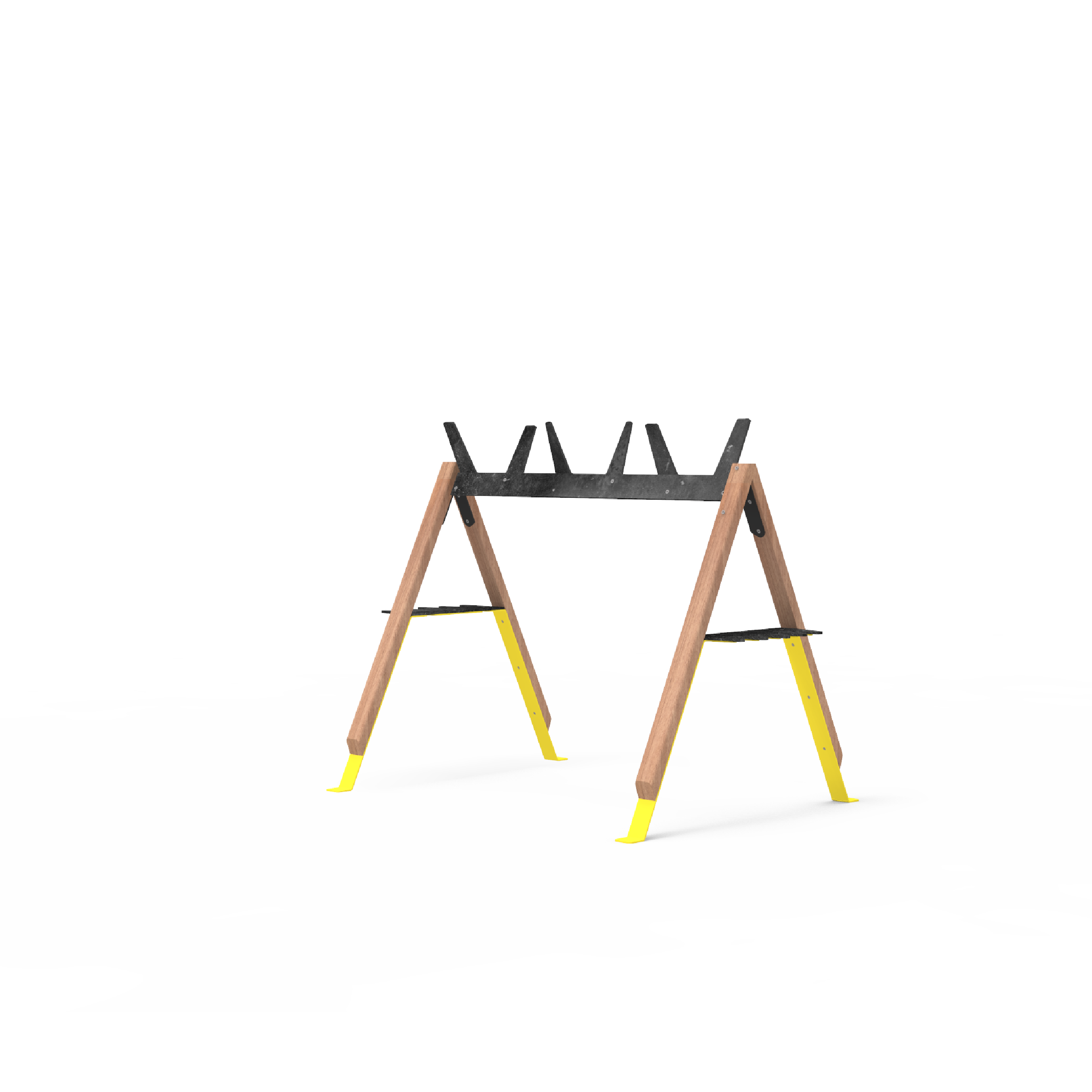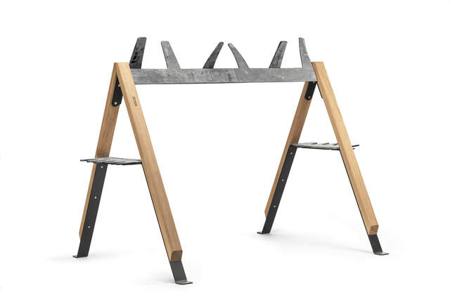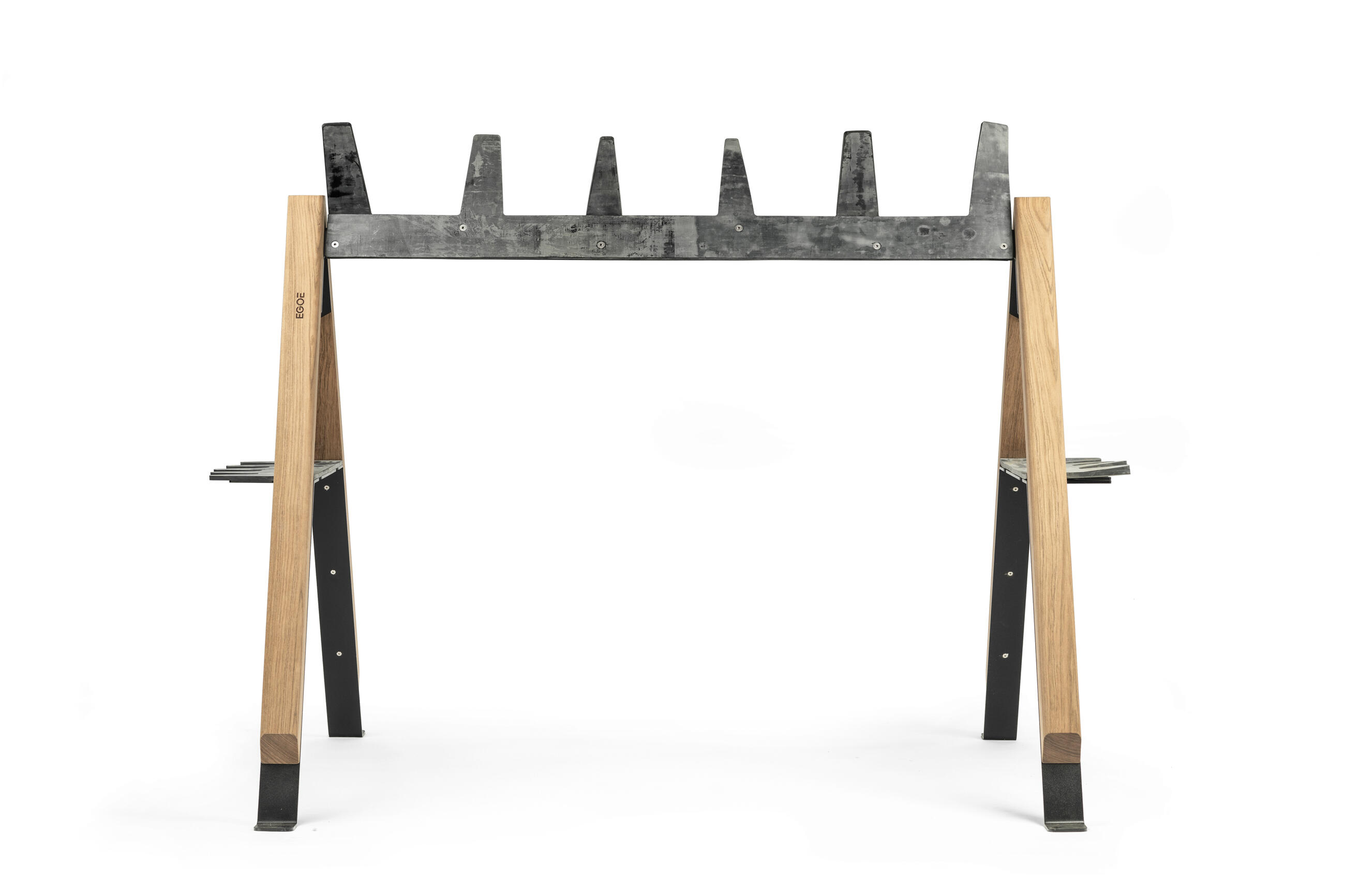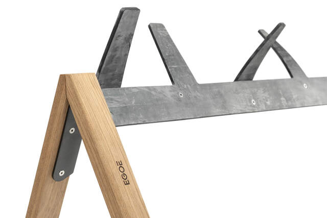 Gummi-Kamm, Stahlkonstruktion, Beine aus massivem Tropenholz