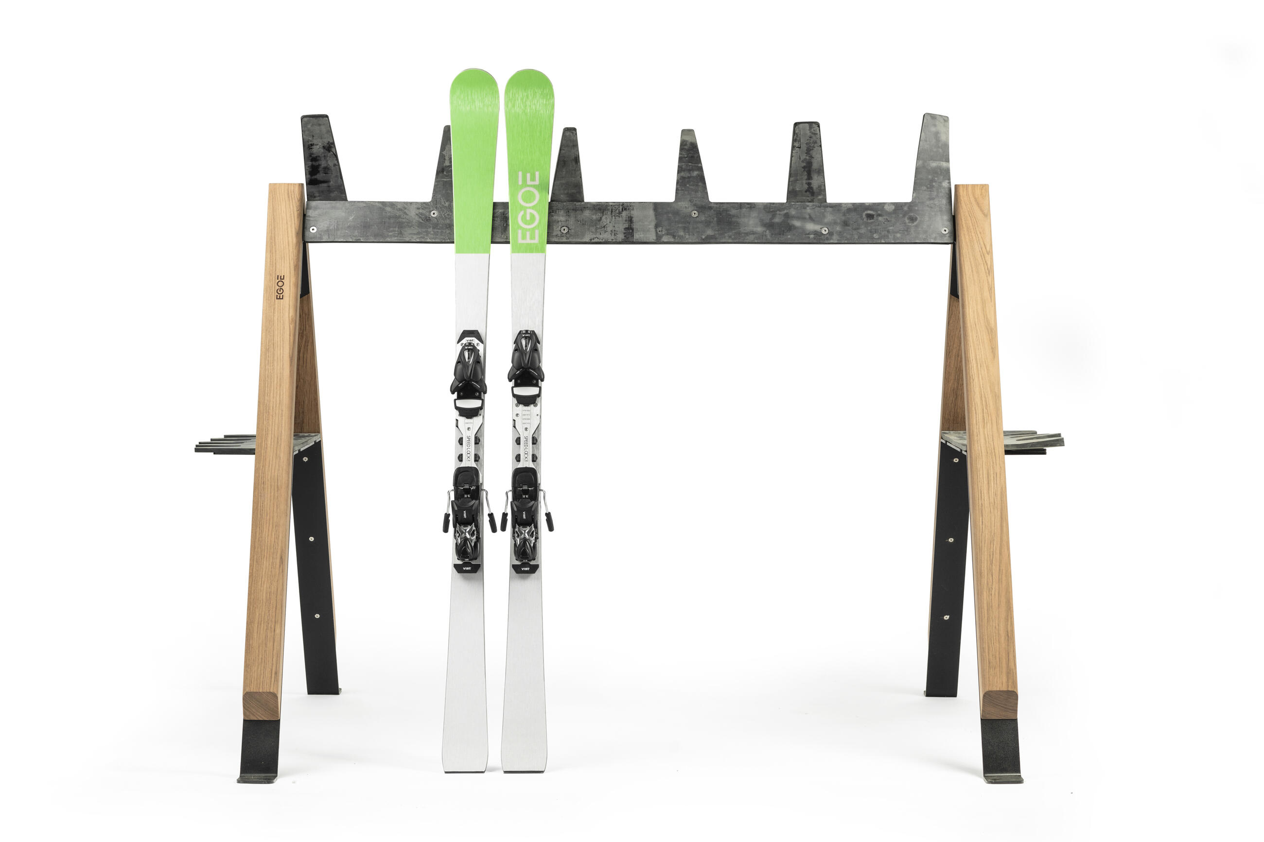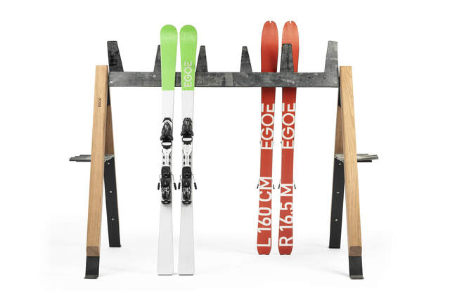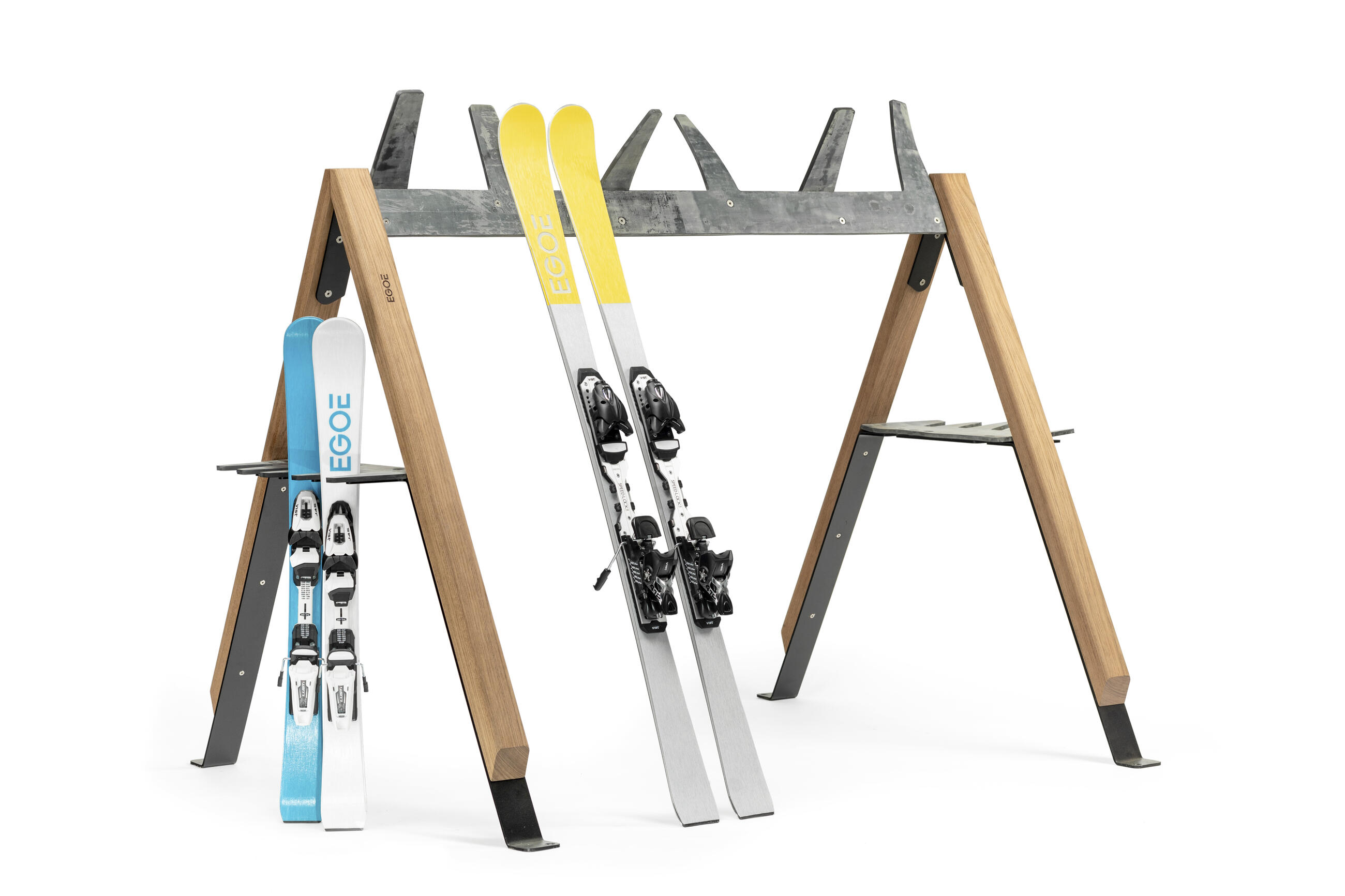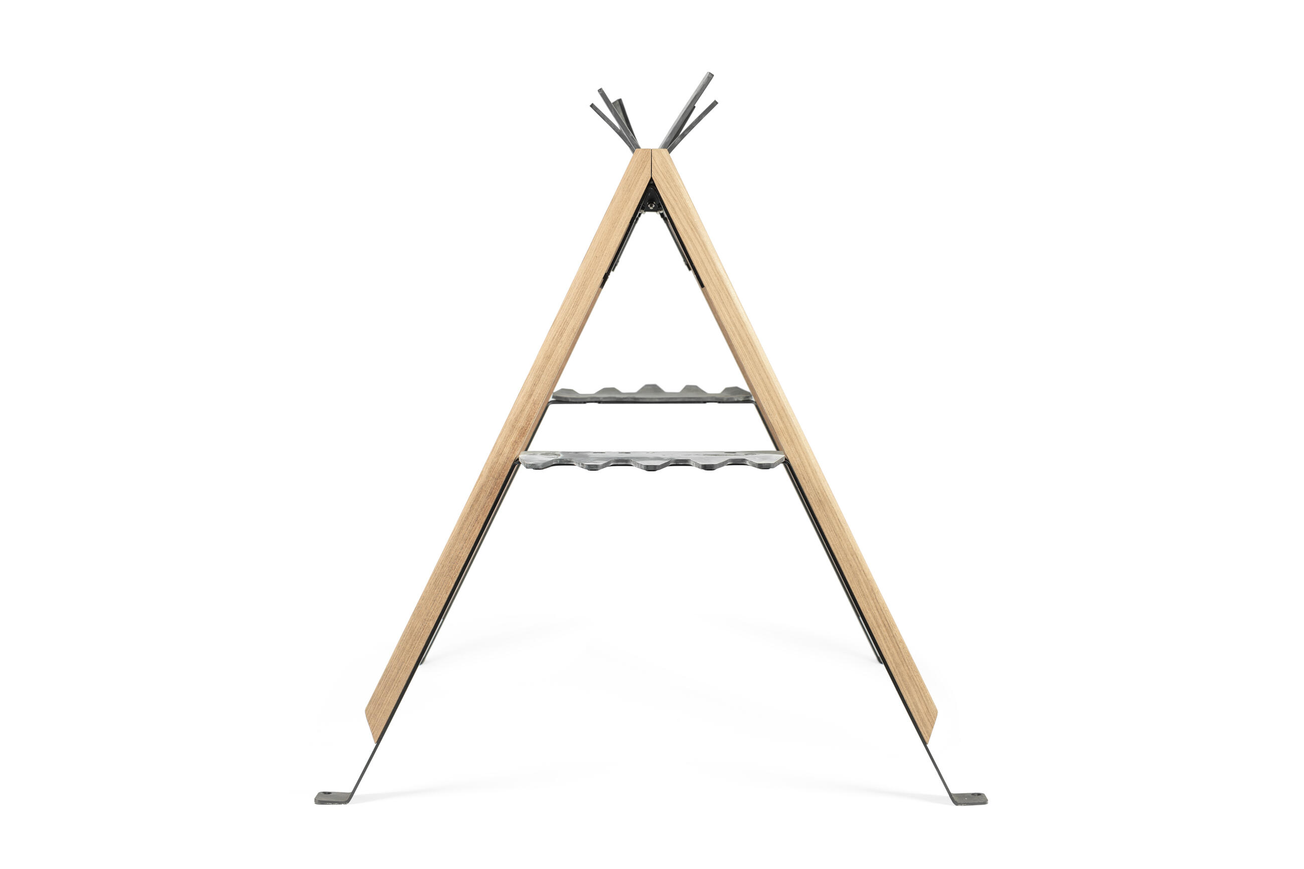 Gummi-Kamm, Stahlkonstruktion, Beine aus massivem Tropenholz