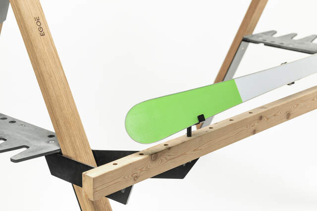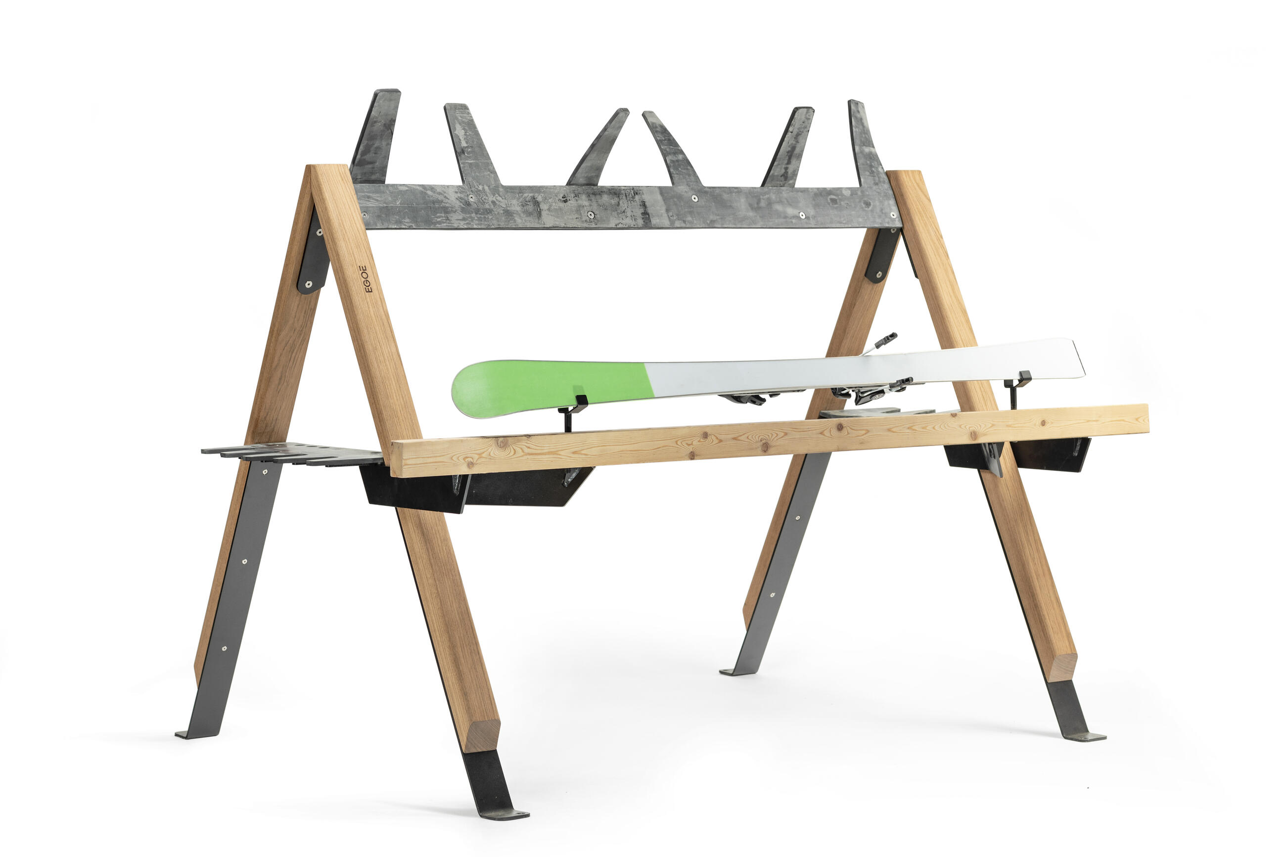 Gummi-Kamm, Stahlkonstruktion, Beine aus massivem Tropenholz