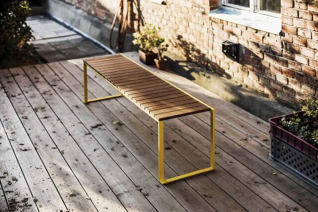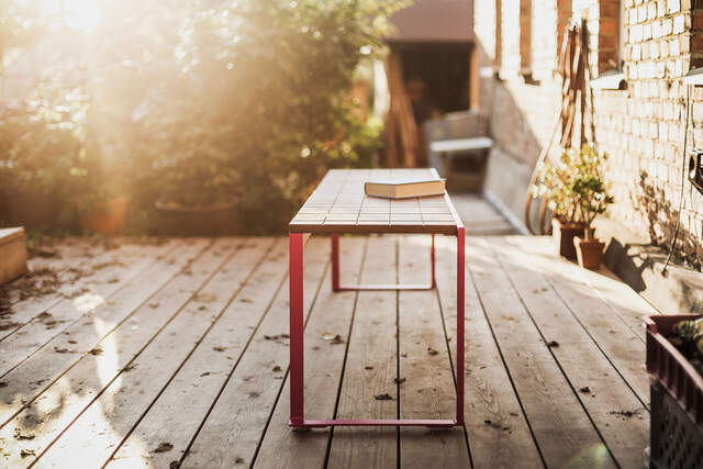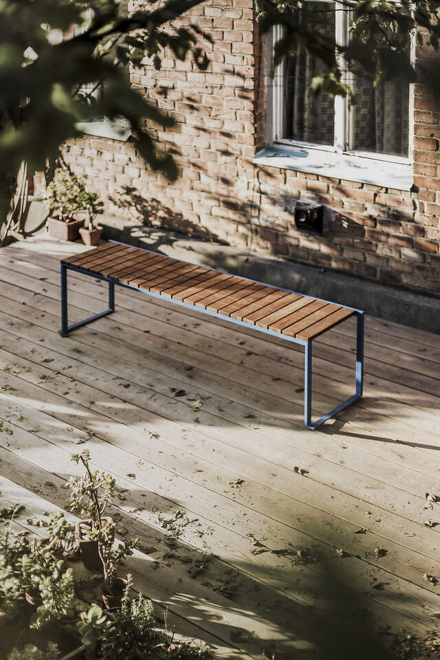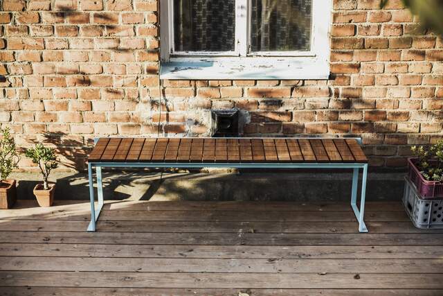 Stahlkonstruktion zinkbeschichtet, pulverbeschichtet, Massivholz mit wahlweiser Ölbehandlung.