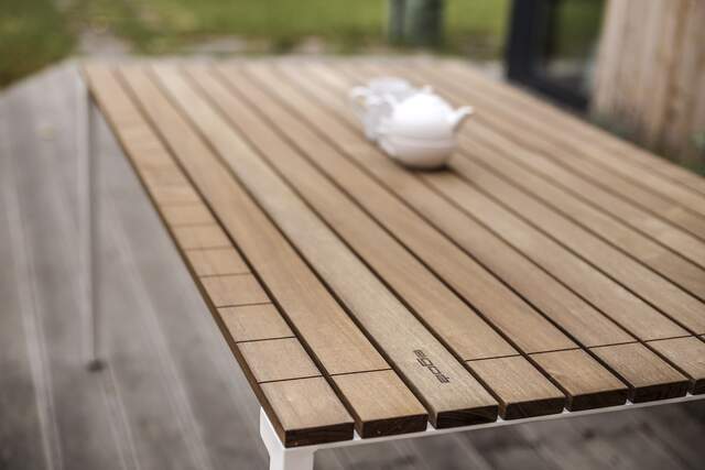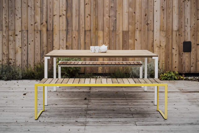 Stahlkonstruktion zinkbeschichtet, pulverbeschichtet, Massivholz mit wahlweiser Ölbehandlung.
