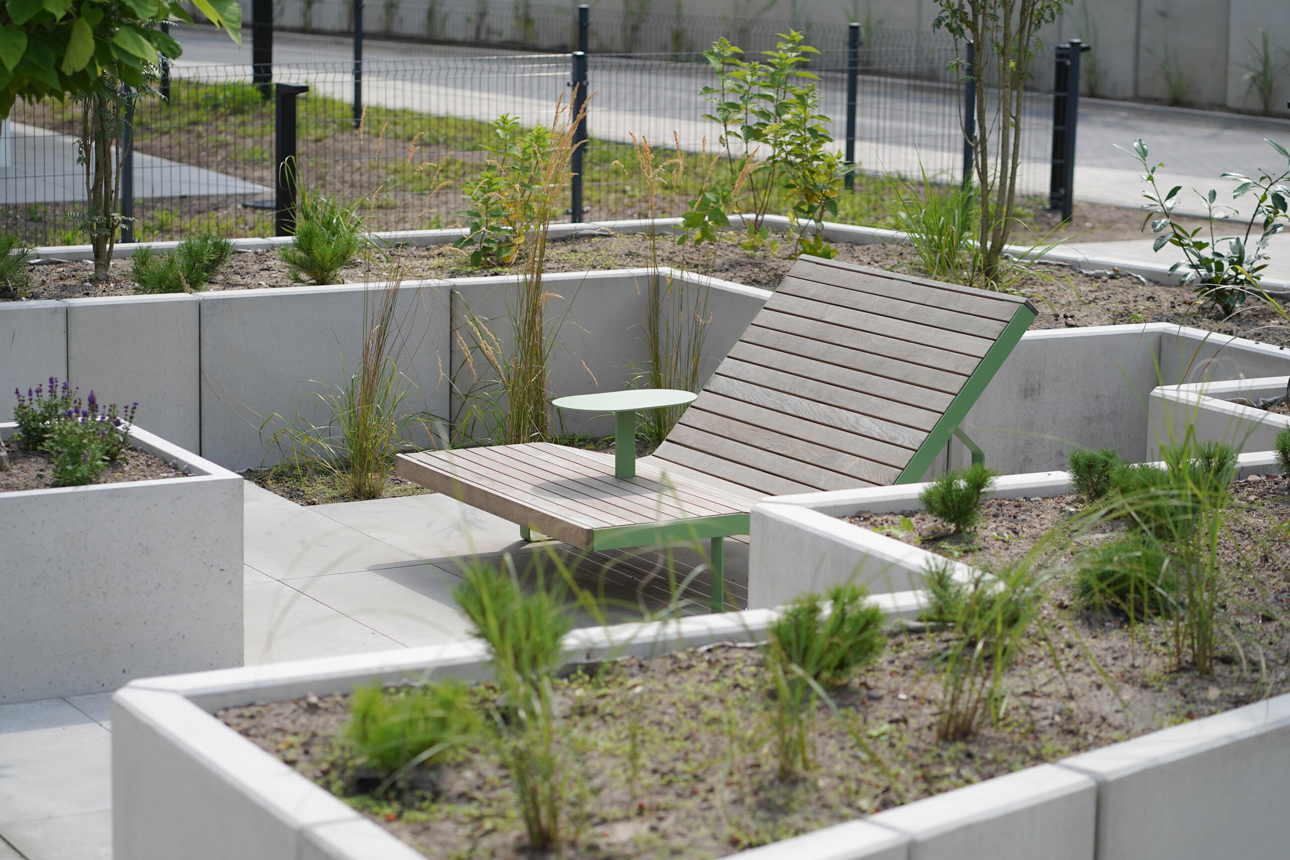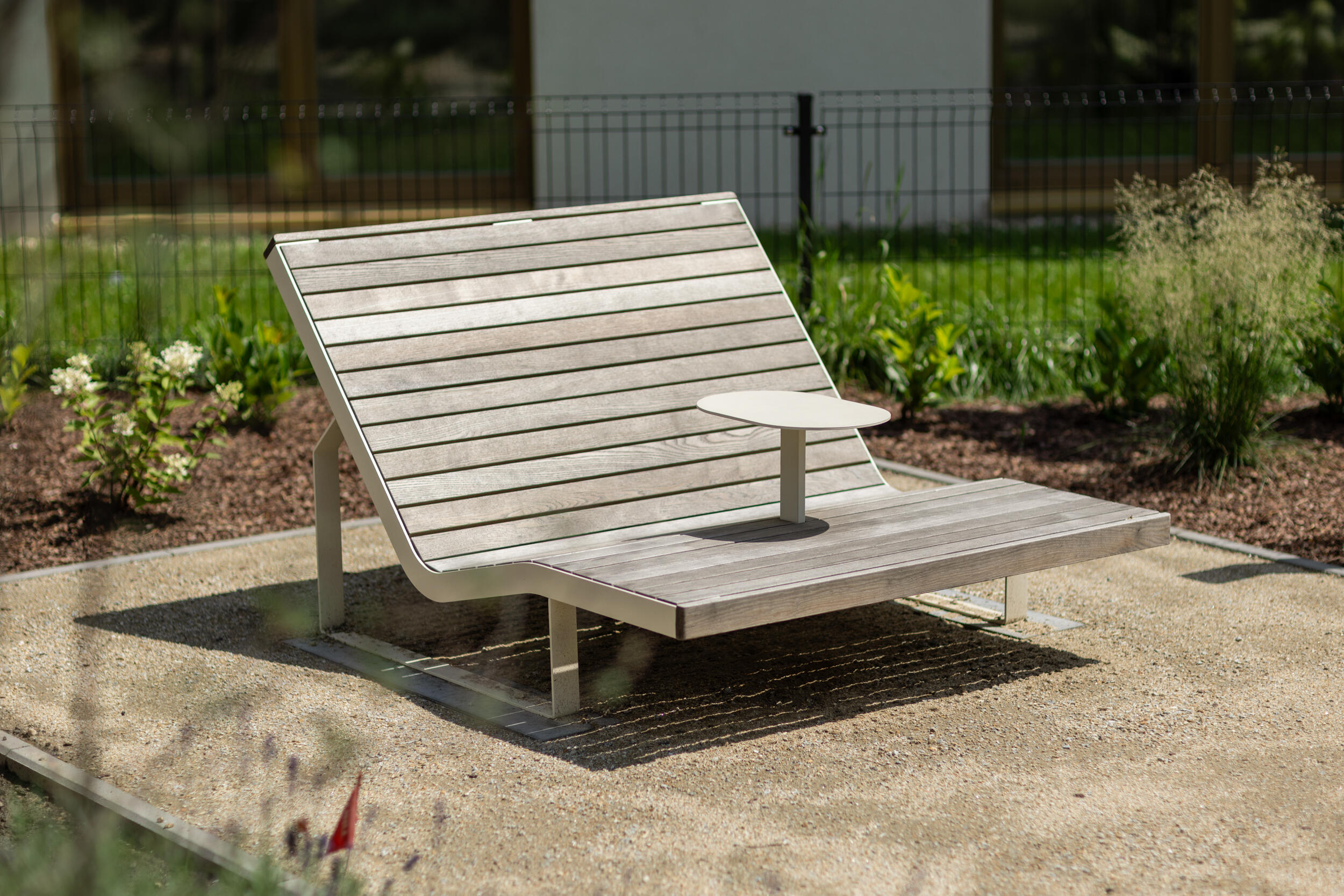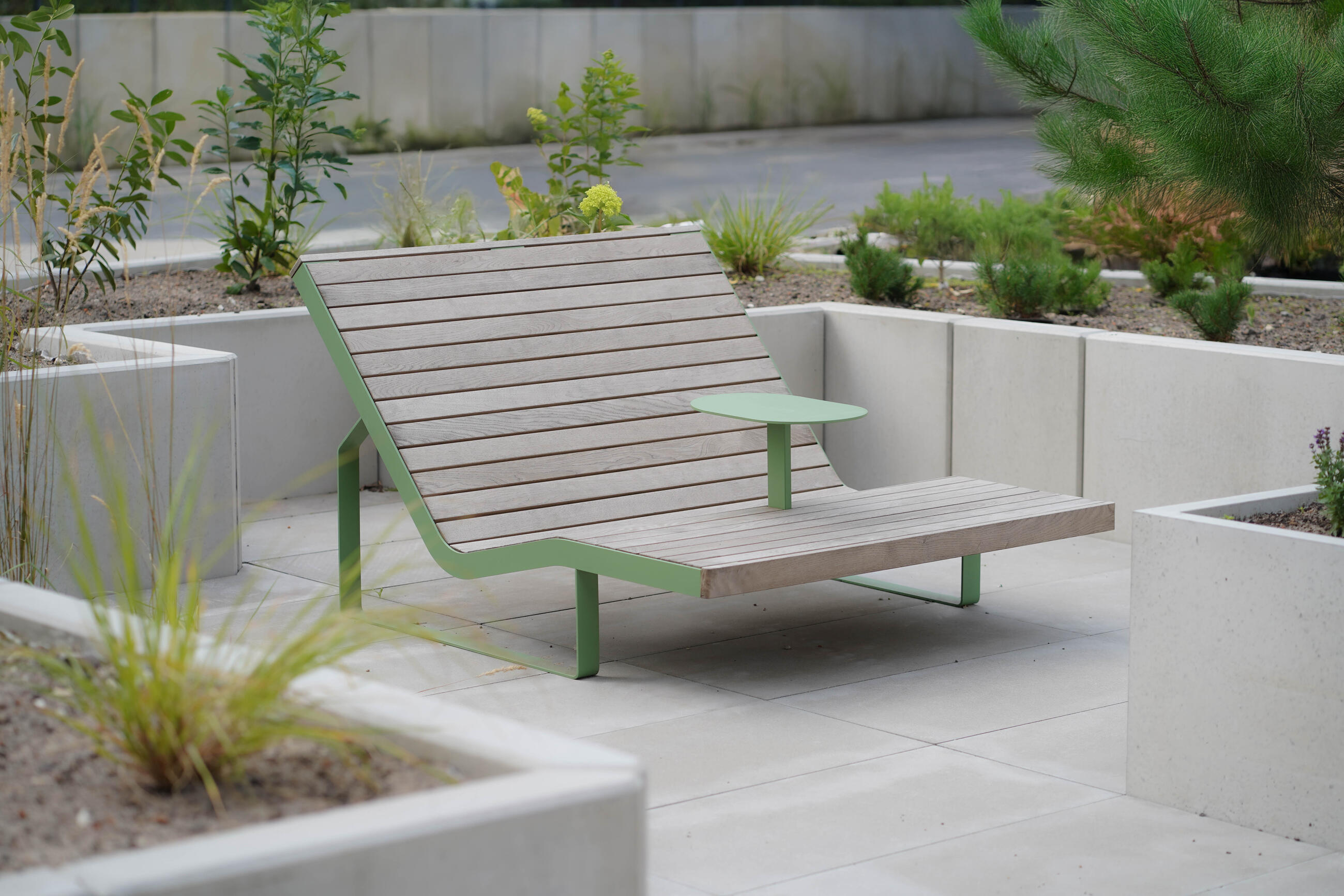 Stahlkonstruktion zinkbeschichtet, pulverbeschichtet, Massivholz mit wahlweiser Ölbehandlung.