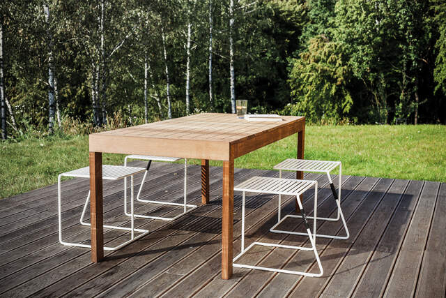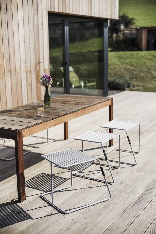 Stahlkonstruktion mit Schutzverzinkung und Pulverbeschichtung; Sitz aus abnehmbarem wasserdichtem Stoff, gefüllt mit Dryfeel®-Outdoor-Schaumstoff; Klettverschluss Velcro