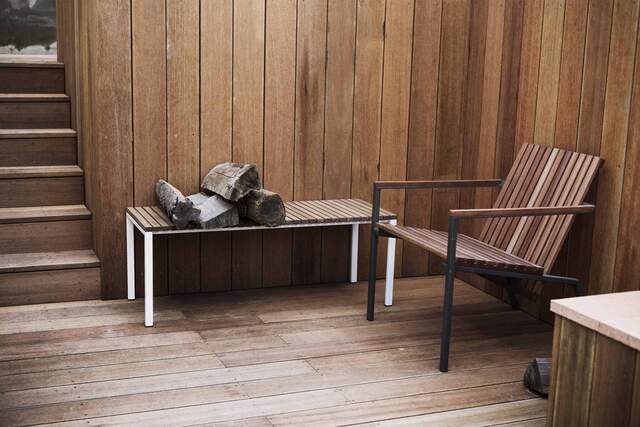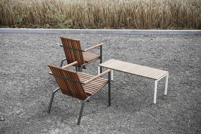 Stahlkonstruktion zinkbeschichtet, pulverbeschichtet, Massivholz mit wahlweiser Ölbehandlung.