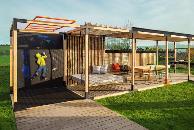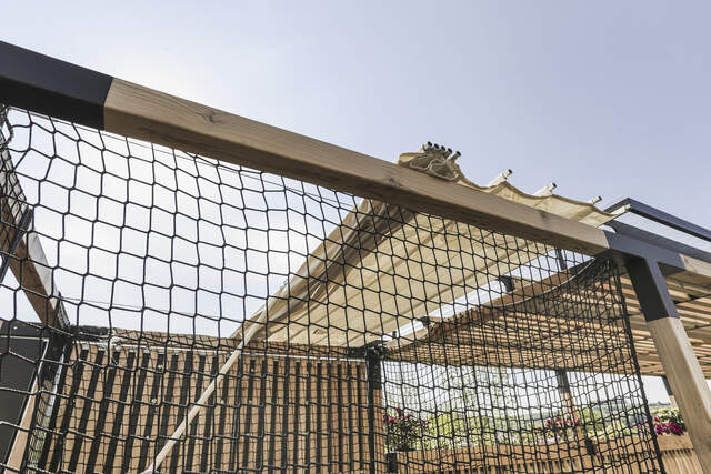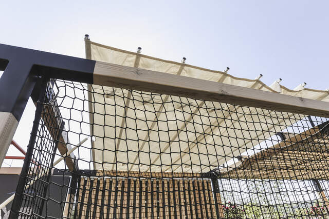Segeltuch aus wasserdichtem Polyestergewebe, Bars aus Aluminiumlegierung, Scharniere aus verzinktem Stahl mit Pulverbeschichtung, textile Befestigungsgurte