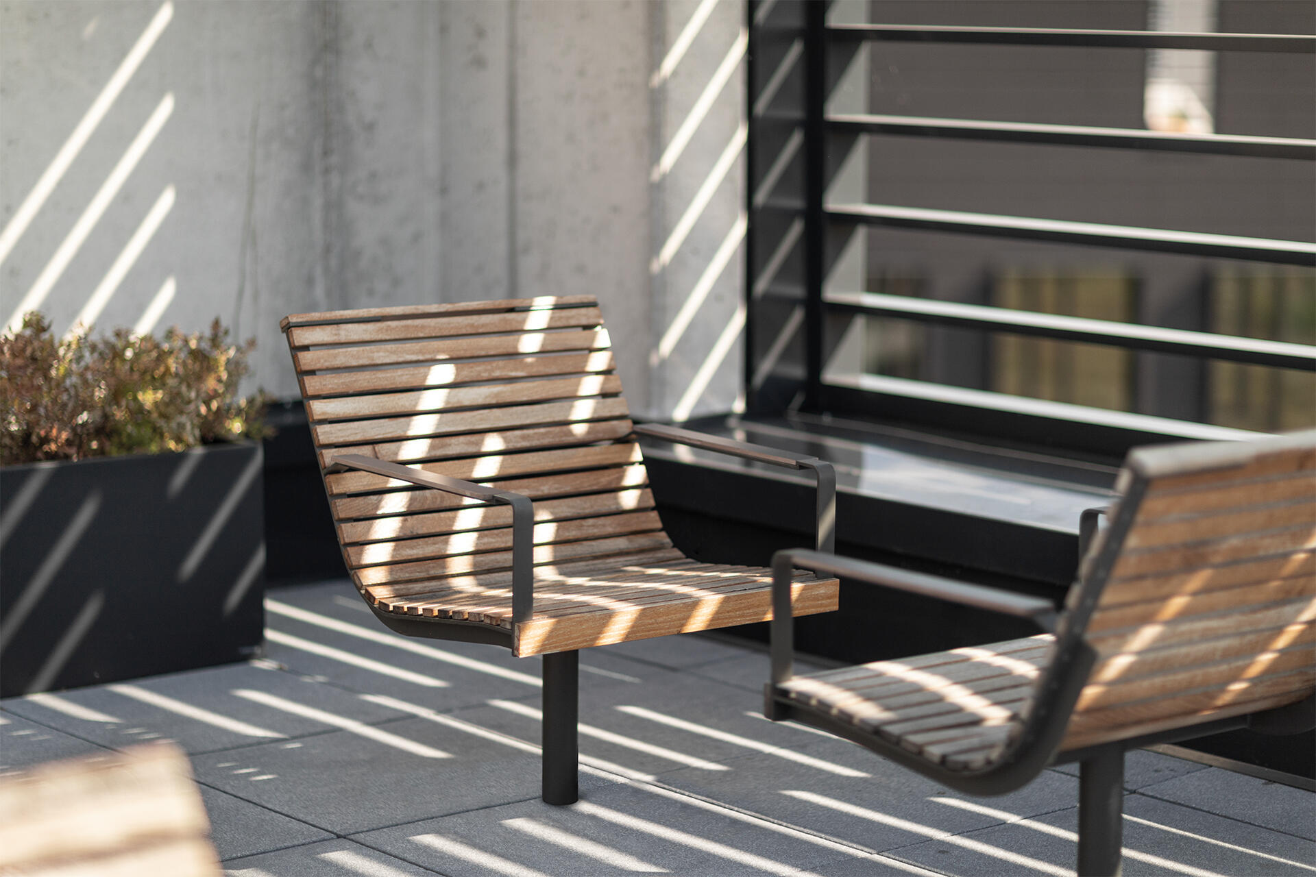 Stahlkonstruktion zinkbeschichtet, pulverbeschichtet, Massivholz mit wahlweiser Ölbehandlung.