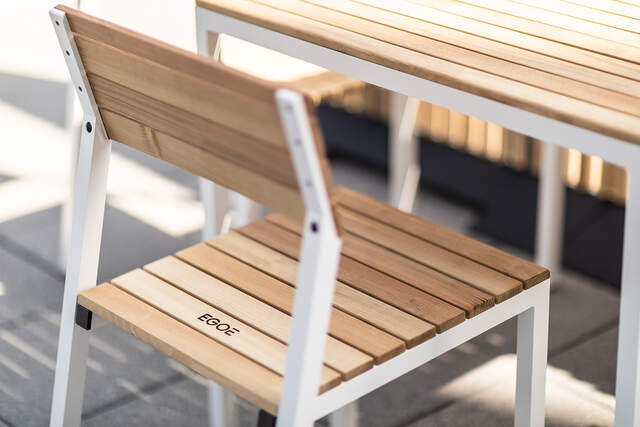 Alu-Konstruktion pulverbeschichtet, Sitz aus Holz mit wahlweiser Ölbehandlung