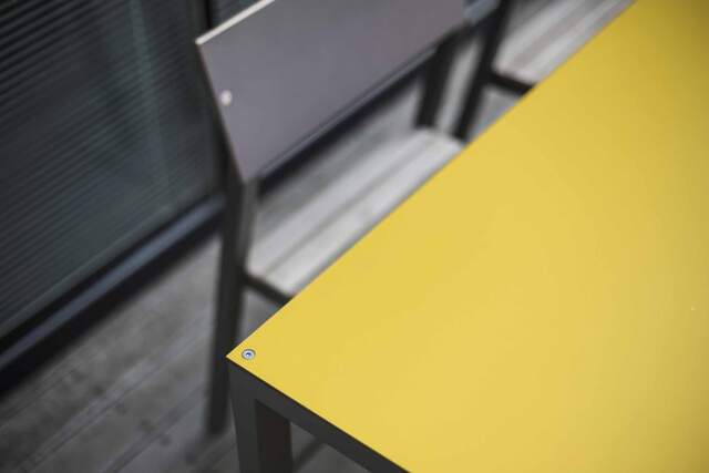 Powder-coated aluminum alloy structure, table top made of high pressure laminate (HPL)