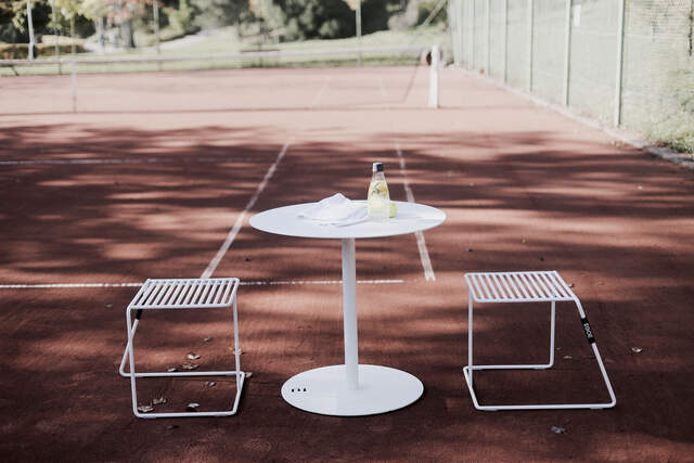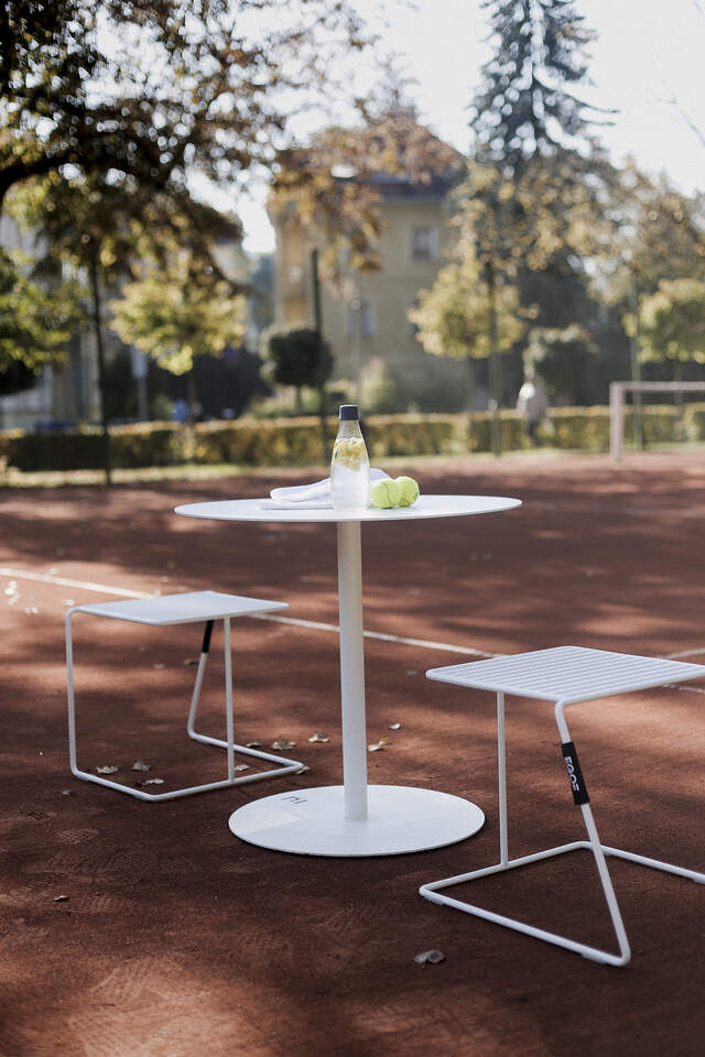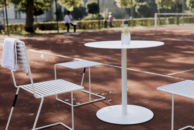 Stahlkonstruktion mit Korrosionsschutzzinkschicht und Pulverbeschichtung, Tischplatte aus pulverbeschichteter Aluminiumlegierung
