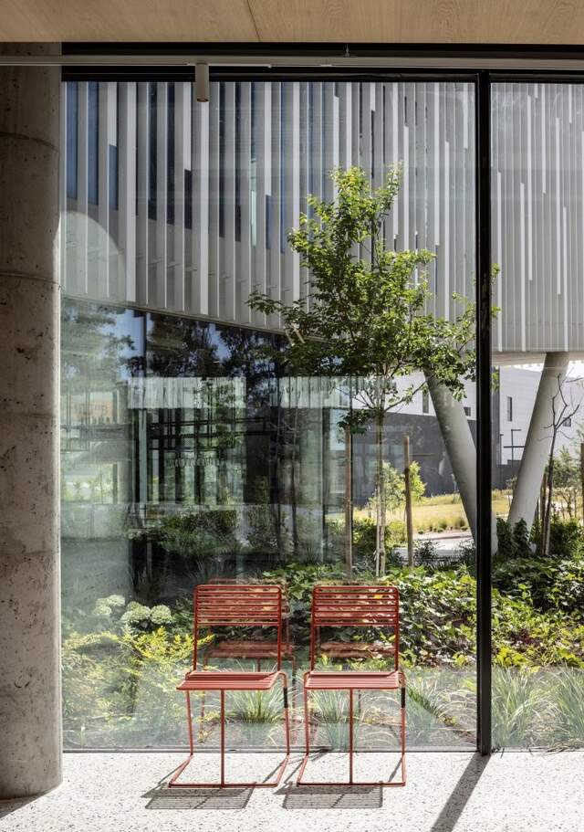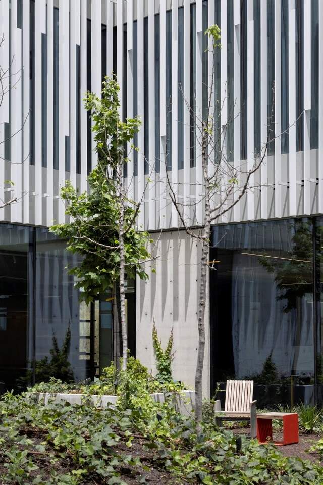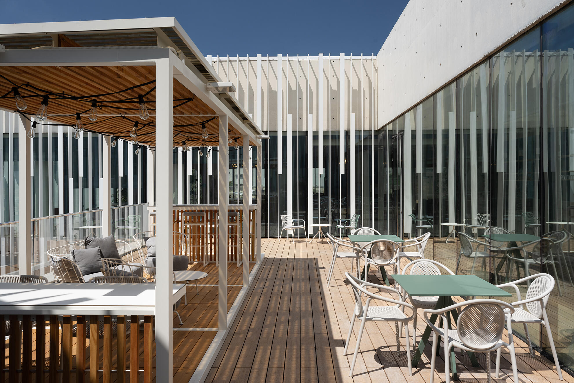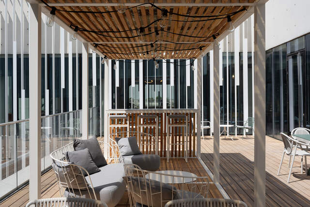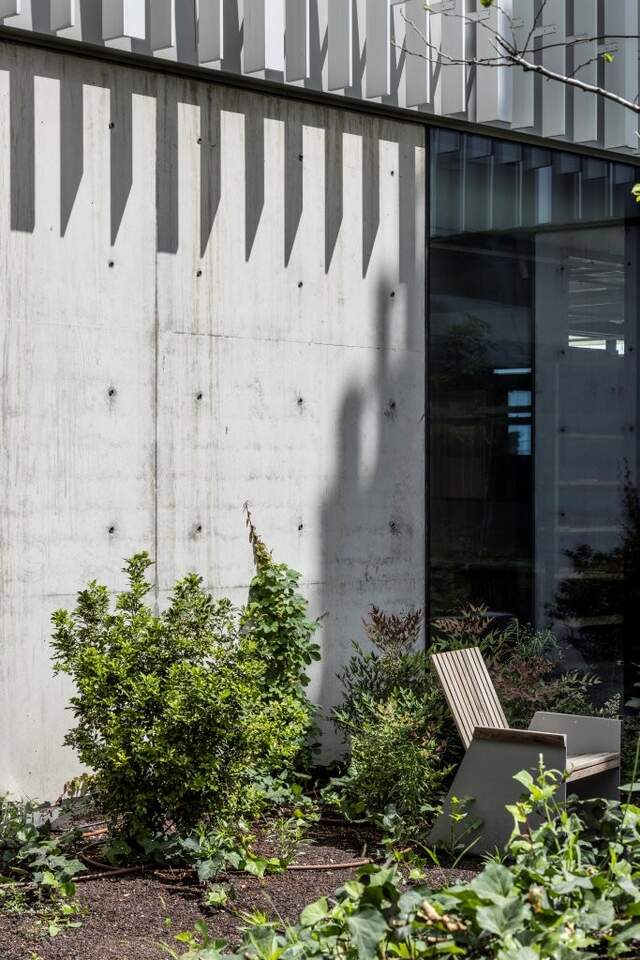 Lamellenwand mit Tisch