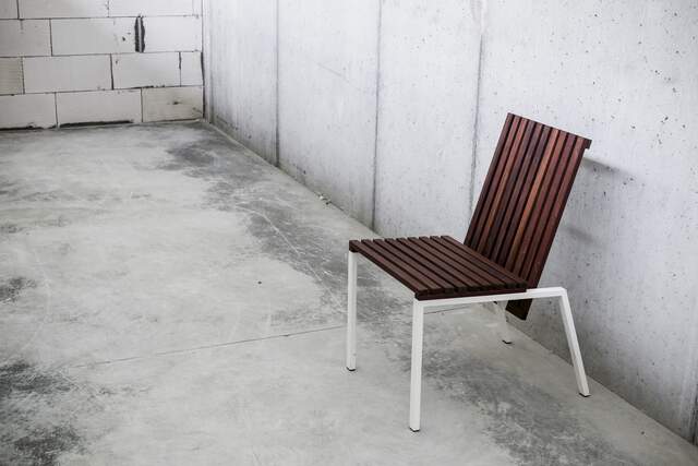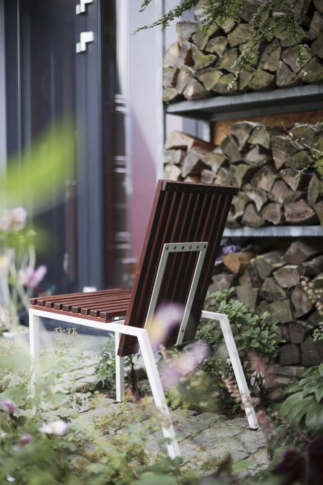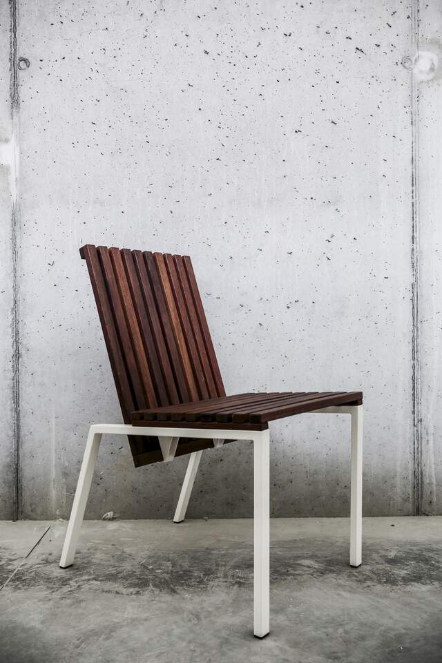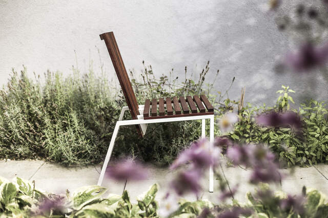 Steel structure with protective zinc coating and powder coating, solid wood with optional oil application