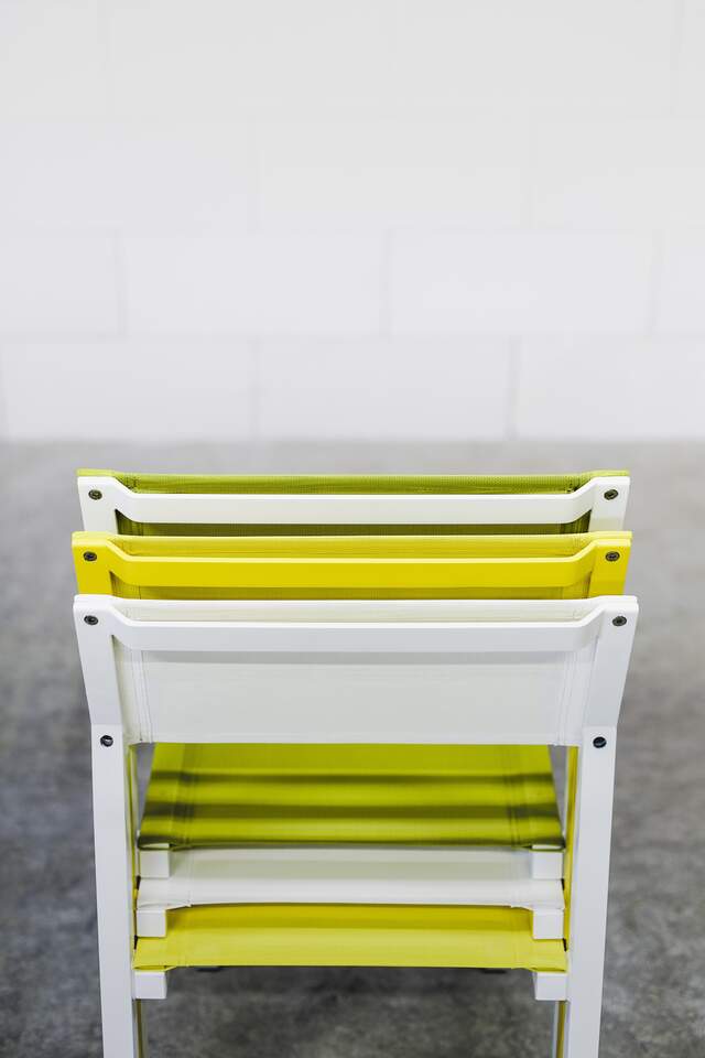 Powder-coated aluminum alloy structure, seat and backrest made of outdoor fabric Batyline®