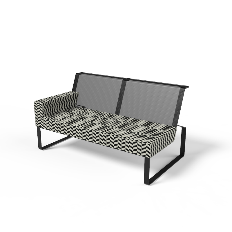 Steel structure with protective zinc coating and powder coating, seat made of outdoor foam Dryfeel® covered with water-resistant outdoor fabric, backrest made of Batyline®