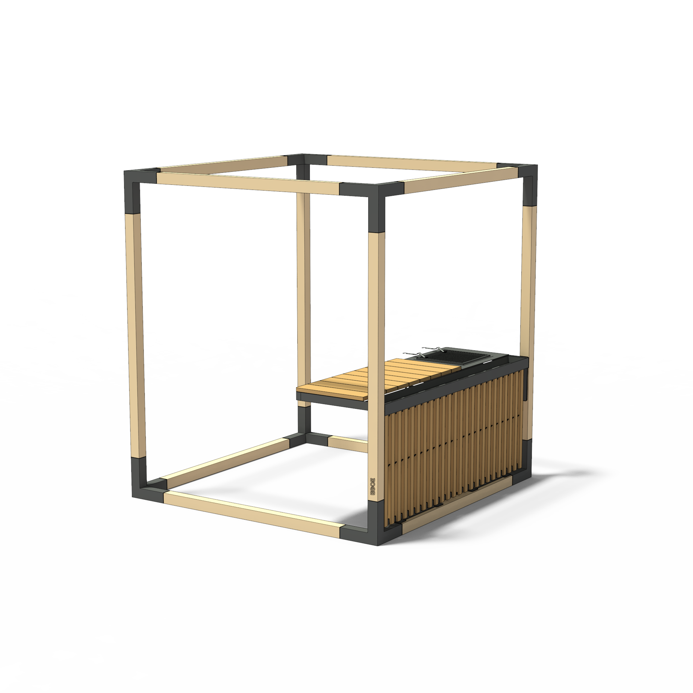 Material | steel structure with corrosion protection zinc coating and powder coating, work surface made of steamed acacia boards, stainless steel elements. The wood is treated with a nano-coating of colourless oil. ONEQ "Glow" Grill |