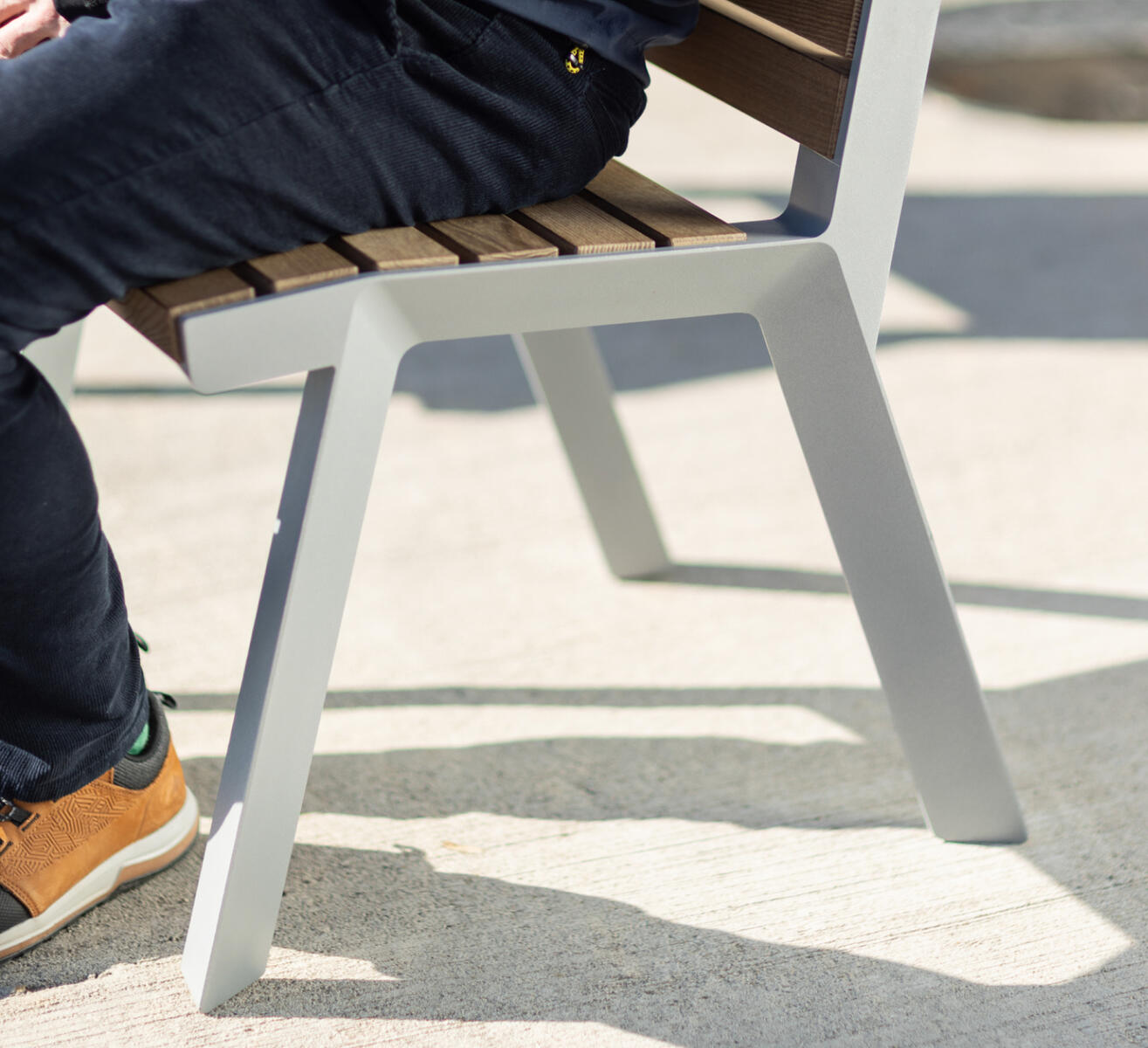 The linking element of the benches in the E collection is the large angle of the legs, which creates an unmistakable side silhouette. Available in an all-steel version as well as in a combination of wood and steel. The range includes simple and elegant bins and bicycle rests.