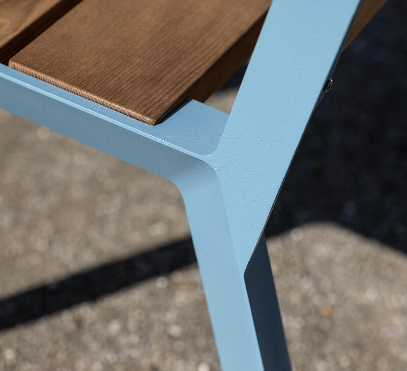 E1 - An entry model into the world of quality benches. The use of cut-outs and their bending has reduced welds and thus reduced costs. The unmistakable silhouette is created by the rounded shapes of the legs.