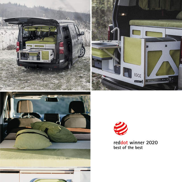The international jury of experts in the field of product design has awarded the Red Dot: Best of the Best prize to the camping car assembly Egoé Nestbox with accessorie. The kit can turn a simple van into a full-fledged camping car in a matter of minutes. It provides you with a bed equipped with a comfortable mattress, portable cooker, mobile refrigerator, wash basin with running water and efficiently designed storage space. The assembly has already been put to good use by travellers who prefer independence and wild nature to mainstream tourism and living in hotels. Nestbox is becoming popular not only in Czechia and Slovakia but also in many countries of Western Europe as well as in South Korea. The Red Dot: Best of the Best is the highest prize to be received in this prestigious international competition. It is awarded to mere 1.5 % of all the registered products each year, making it an equivalent of the Oscars for design.