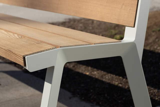 The E3 benches are able to emphasise the importance of space through their shape. At the same time, they are not distracting - the overall impression is calmed by the simple and clean surfaces of the seat and backrest. Either slats or solid wood boards with a choice of finishes are used.