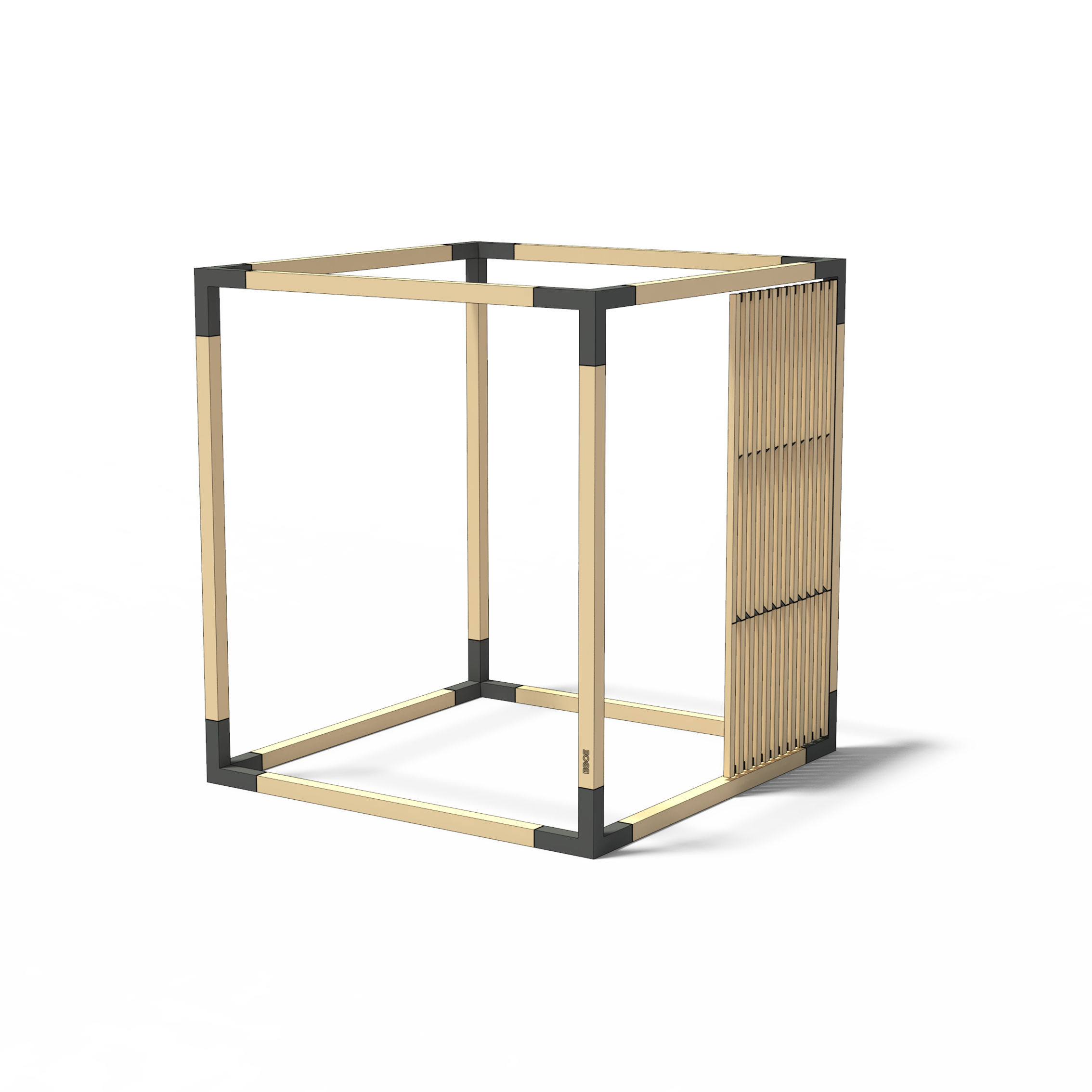 Material | steel structure with anticorrosive zinc coating and powder coating, larch slats. The wood is treated with nano-paint colourless oil. |