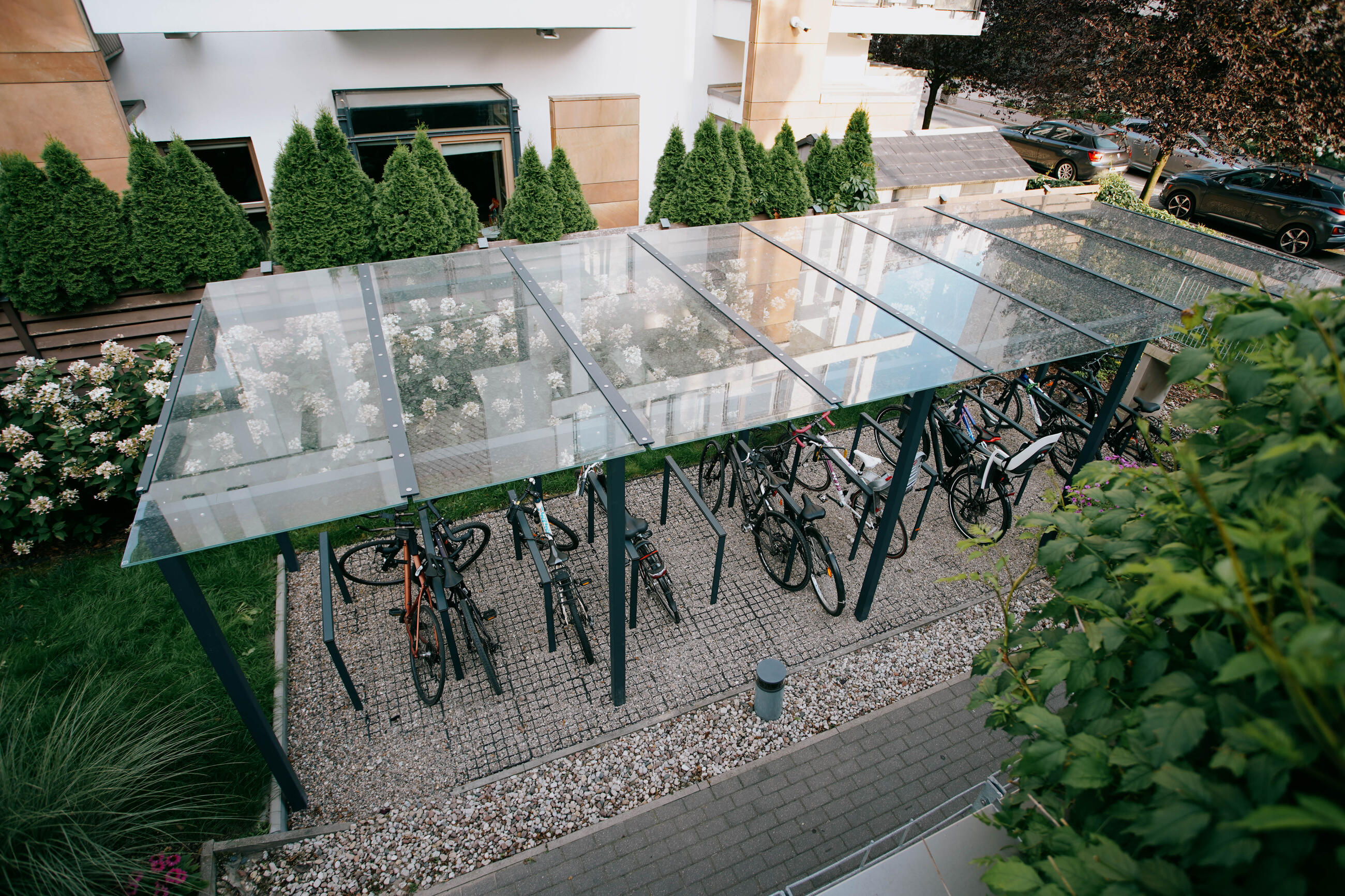 | Material | The structure is made of thin-walled steel bars 80x80mm [3.15“x3.15“] and their weldments with anticorrosive zinc surface protection and powder-coating. Colour can be selected according to „Samplers RAL“. Stainless steel fasteners. |