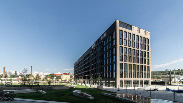 On the site of one of the oldest engineering works in Prague called Rustonka, three new office buildings are planned of which so far only the first one has been completed. The investor, J&T Real Estate, decided to turn it into a showcase for the future complex.
