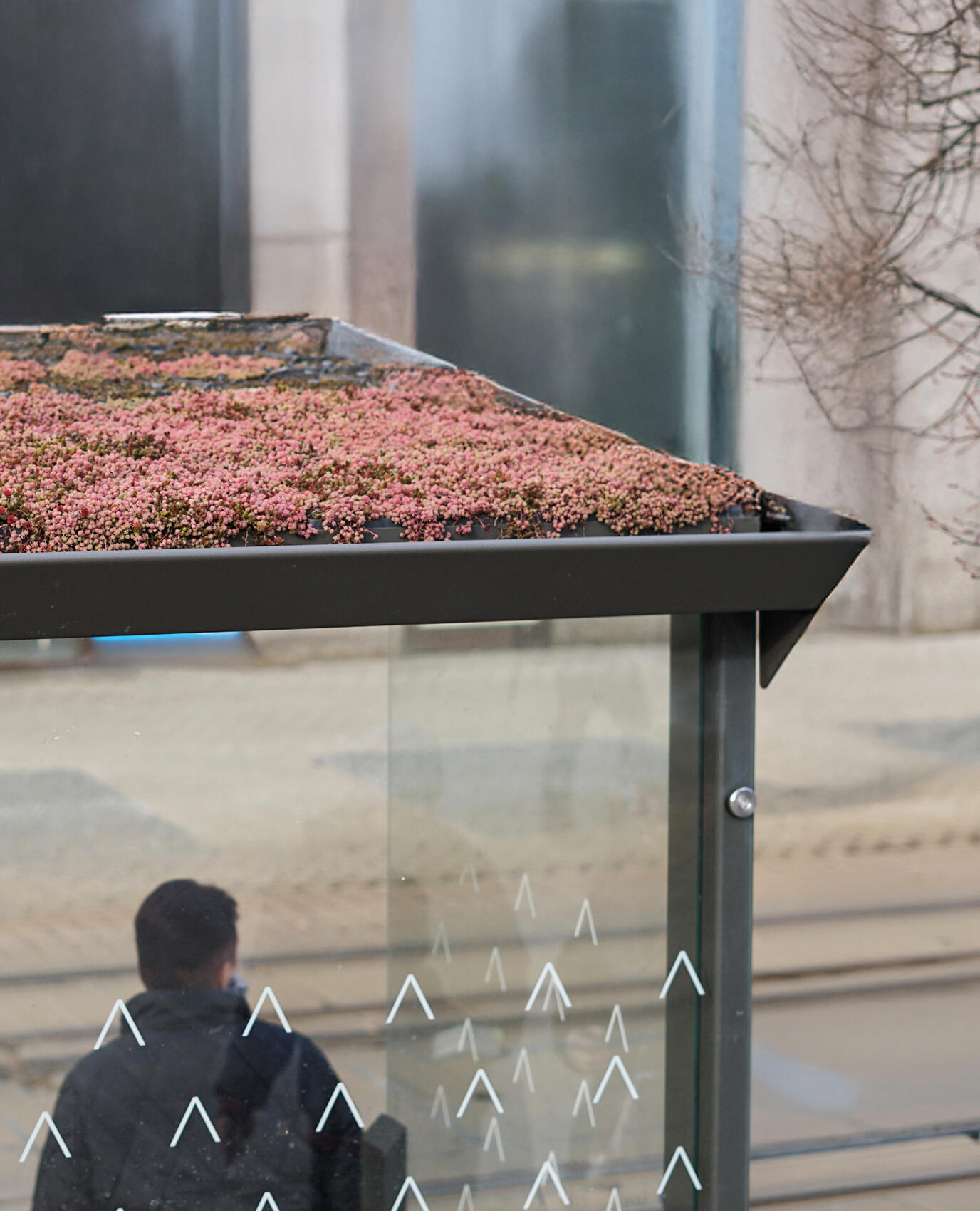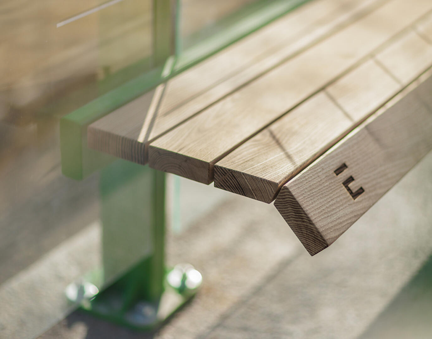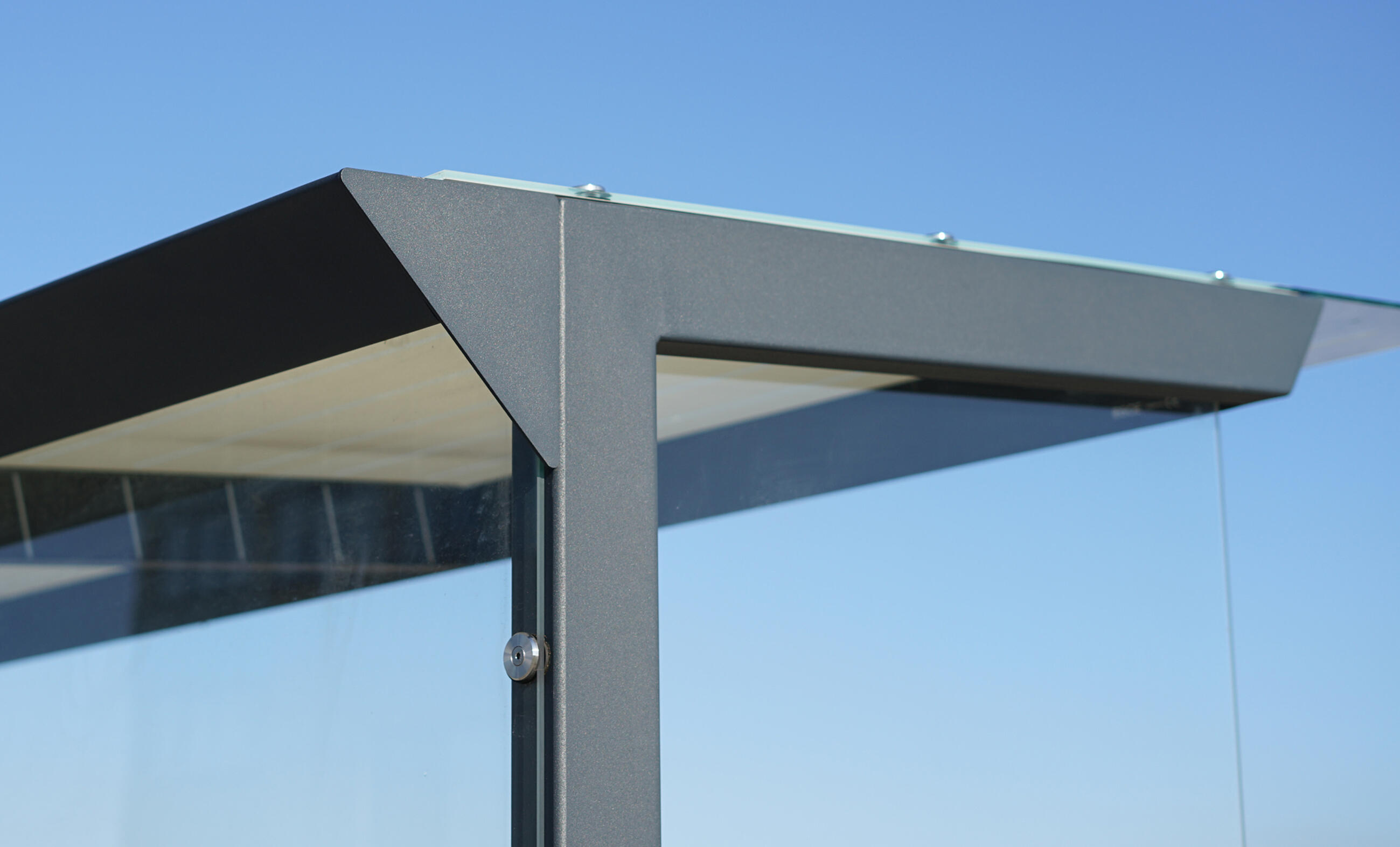 Konstrukcja nośna skupiona jest w ścianie tylnej. Rozwiązanie to otwiera drogę do nieograniczonej modułowości. Można wybrać różne długości w zależności od wymaganej pojemności lub pominąć panele boczne, jeśli blokują przejście. Kolejną zaletą konstrukcji samonośnej jest jej lekkość optyczna. Wiata nie zajmuje miejsca, staje się jego częścią i dopełnia je.