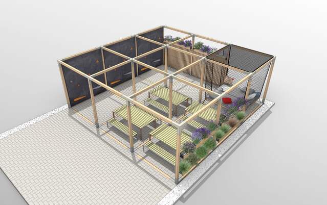 System sześcianów Leva powstał z myślą o stworzeniu kolejnego pomieszczenia w ogrodzie lub na tarasie. Tak, by w prosty sposób zachować komfort wnętrza i dodać emocje związane z przebywaniem na zewnątrz. Stopniowo powstawały zestawy dla firm w formie biur, elementy przestrzeni publicznej, a także rozwiązania dla szkół - wśród referencji Egoé są m.in. Szkoła Podstawowa Tbiliská w Bratysławie i w Šlapanicach okolicy Brna czy przedszkola w miejscowości Bělá pod Bezdězem, Moravskim Krumlovie i Soběšicach.