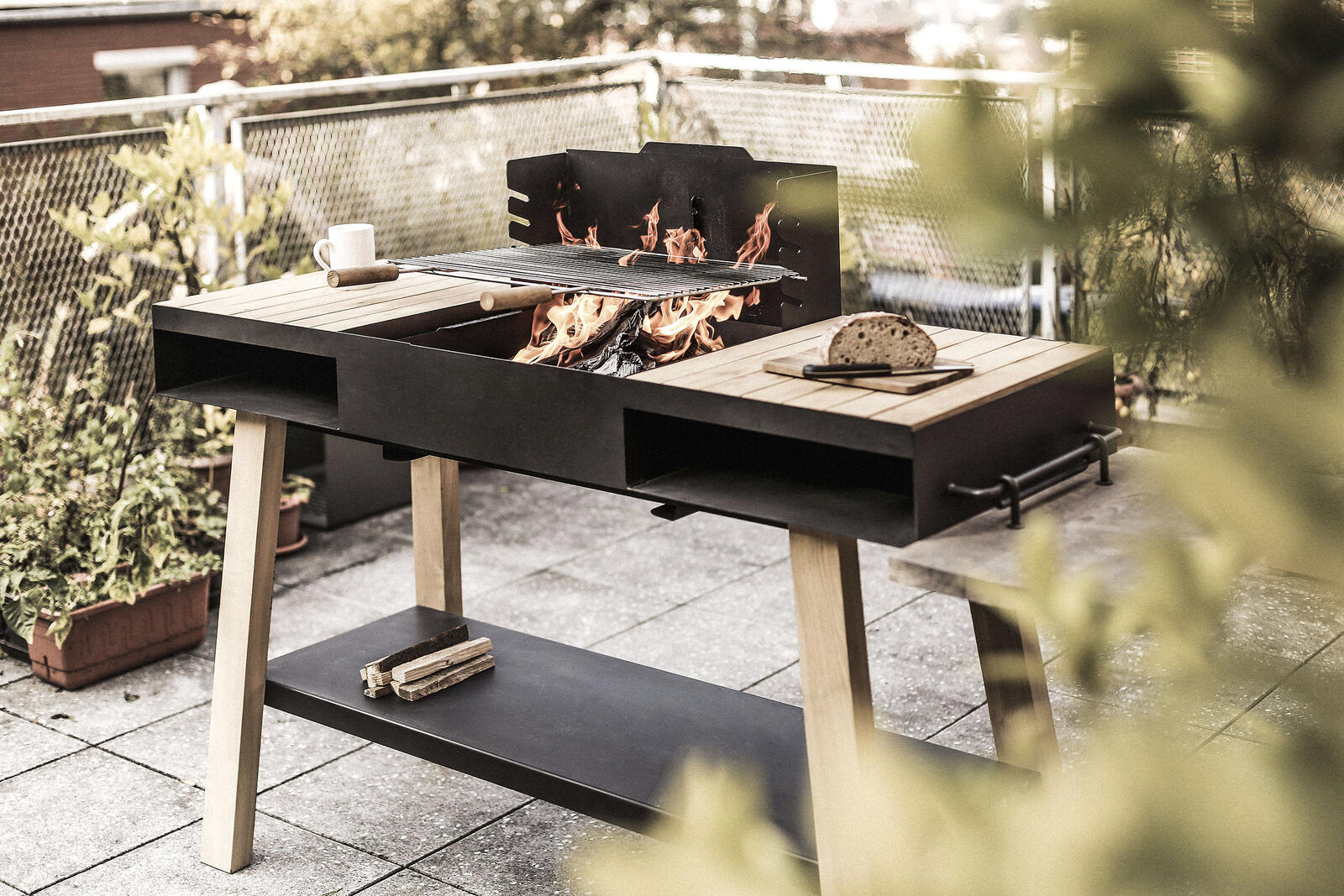 Paleniska i grille wykonano ze stali pokrytej żaroodporną farbą. Nogi grillów, półki, miejsce do odkładania oraz uchwyty rusztu są wykonane z drewna akacjowego. Ruszty do grillowania wykonano ze stali nierdzewnej. Garnki do palenisk składają się ze stalowego statywu, żeliwnego kocioła i emaliowanej pokrywki.