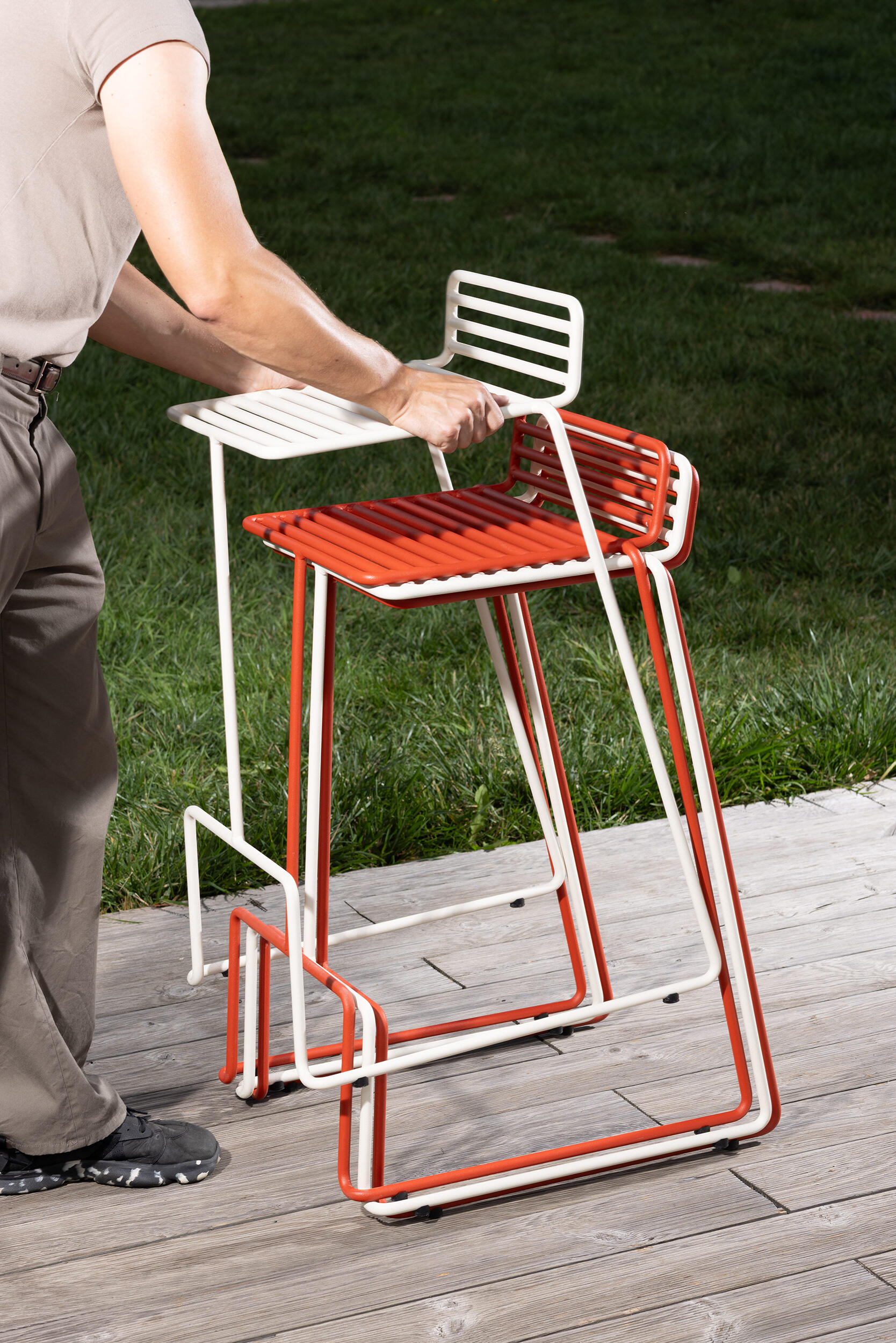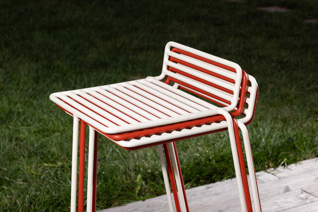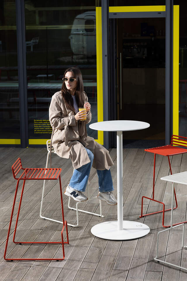 Stalowa konstrukcja z ochronną powłoką cynkową i powłoką proszkową; siedzisko wykonane ze zdejmowanej wodoodpornej tkaniny, wypełnione pianką zewnętrzną Dryfeel®; zapięcie na rzep Velcro