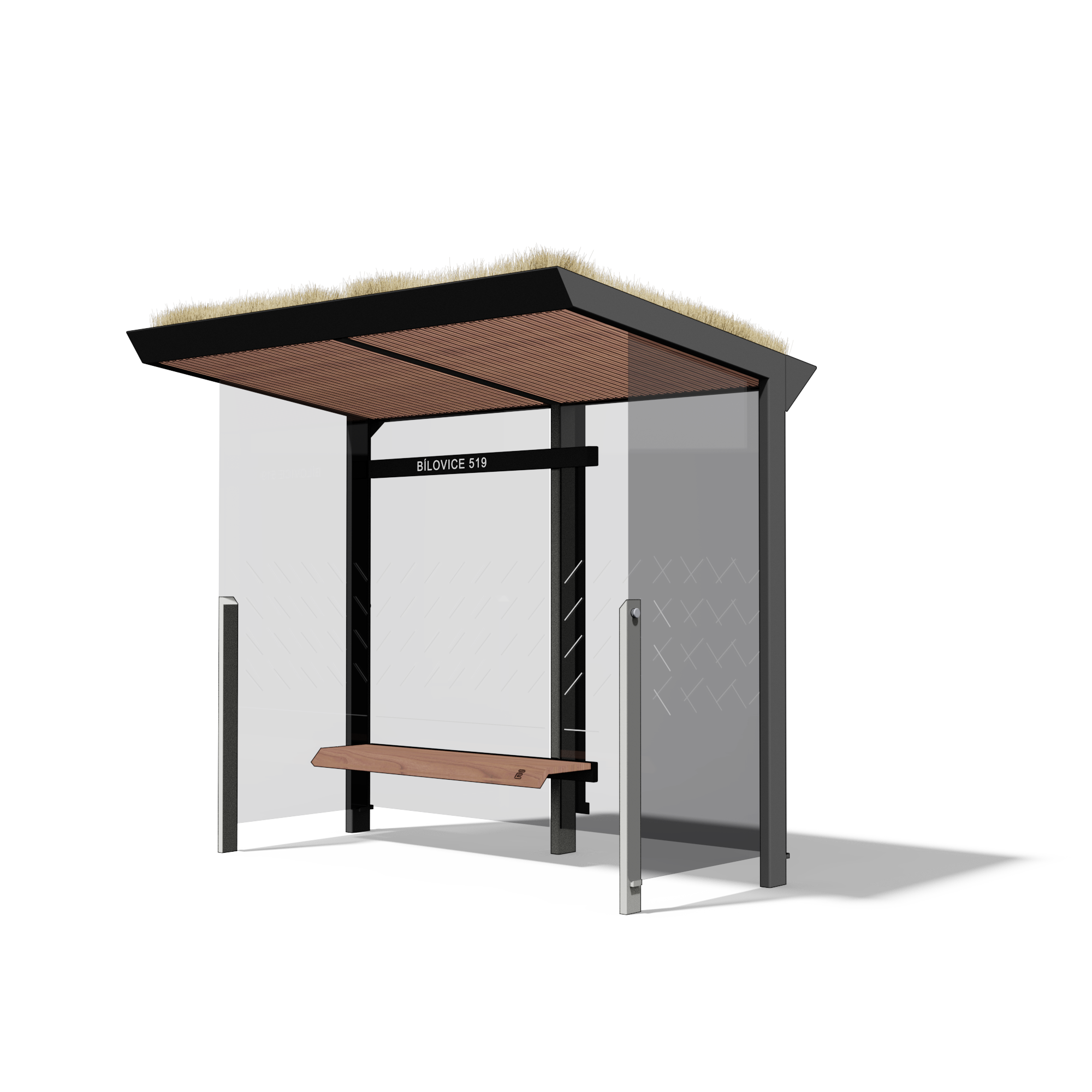- Wiata przystankowa X1 z roślinnością na dachu