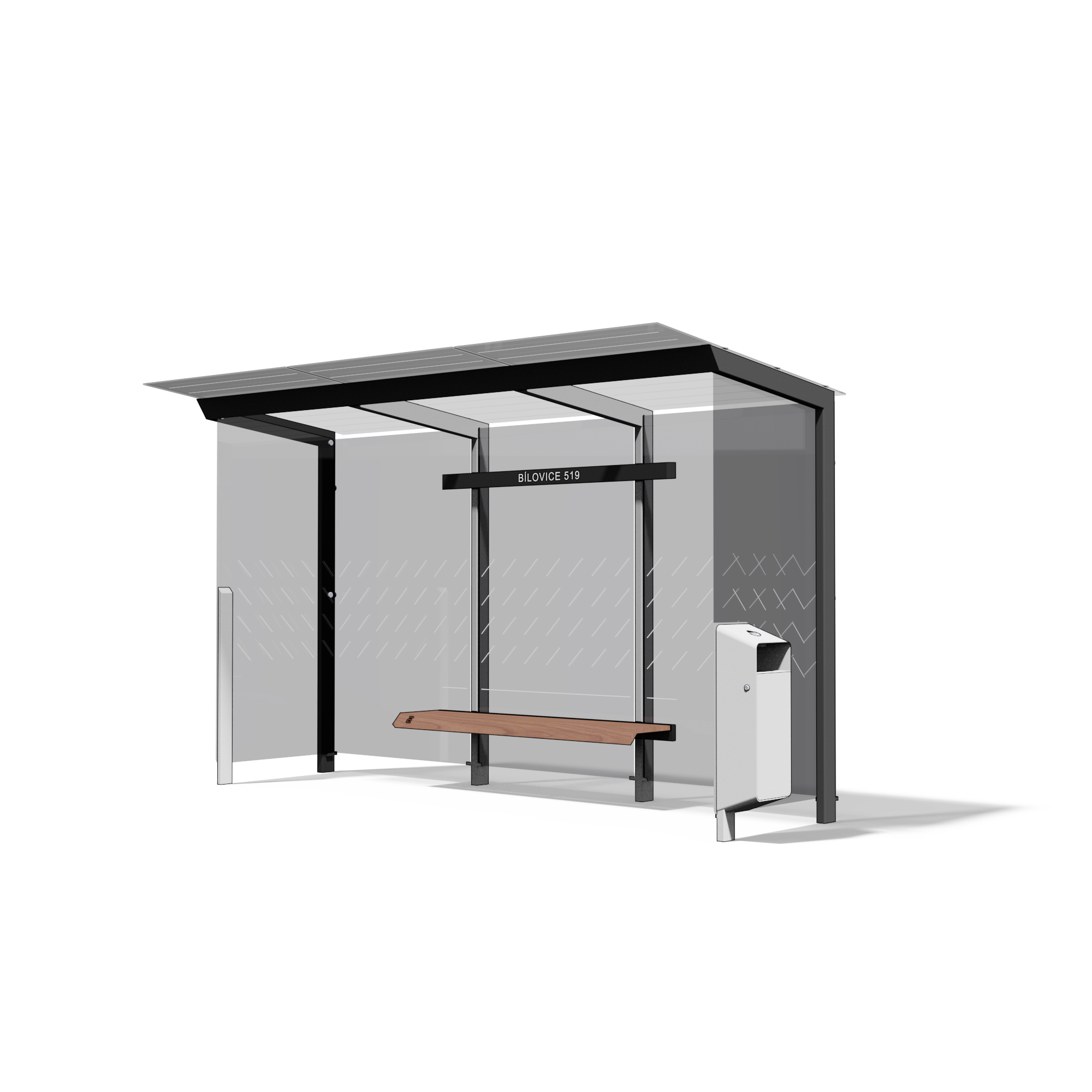 - Wiata przystankowa X1 z wbudowanym koszem