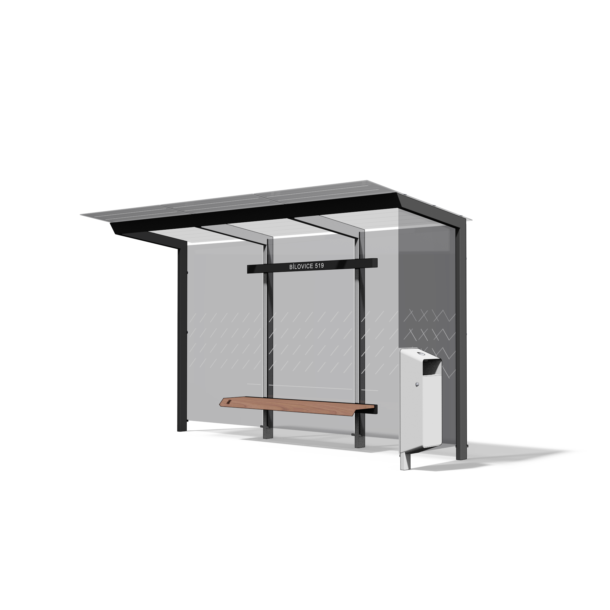 - Wiata przystankowa X1 z wbudowanym koszem